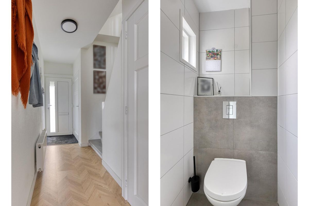 Via de verzorgde voortuin bereik je de entree van de woning. Vanuit de hal bereik je het toilet, trapopgang naar de eerste verdieping, trap/kelderkast met meterkast en de woonkamer en keuken.