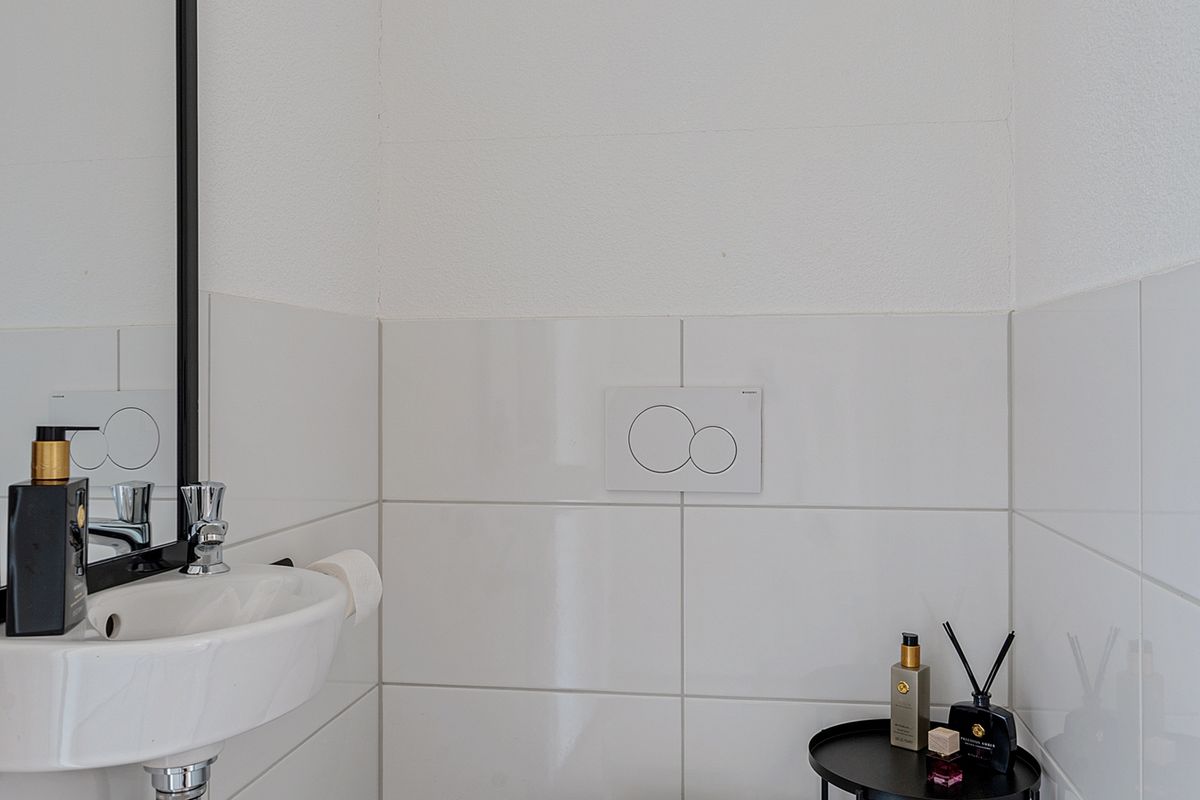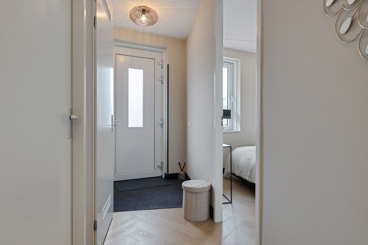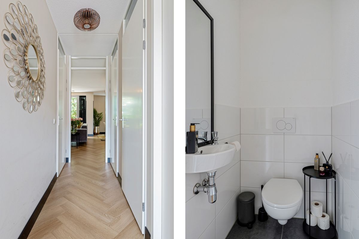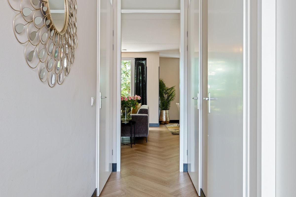 Via de galerij betreed je het praktisch ingedeelde 3-kamer appartement. Het is geheel voorzien van een pvc-vloer met visgraatmotief en vloerverwarming en plafonds en wanden zijn strak gestuukt in neutrale kleurstelling. Vanuit de lange en lichte hal zijn alle vertrekken te bereiken. Direct na de entree ligt links de grootste slaapkamer en rechts de kleinere slaapkamer. Vervolgens bereik je de inpandige berging, met de aansluiting voor wasmachine en droger, met daarnaast de toiletruimte met zwevend toilet en fonteintje. Aan de overzijde ligt de moderne badkamer, die is voorzien van dubbele wastafel, designradiator, badkamermeubel en een inloopdouche.
