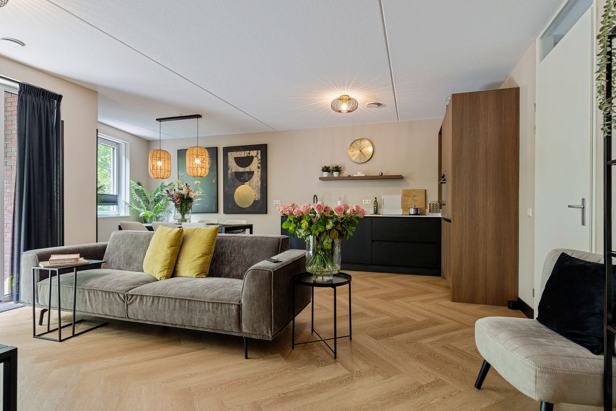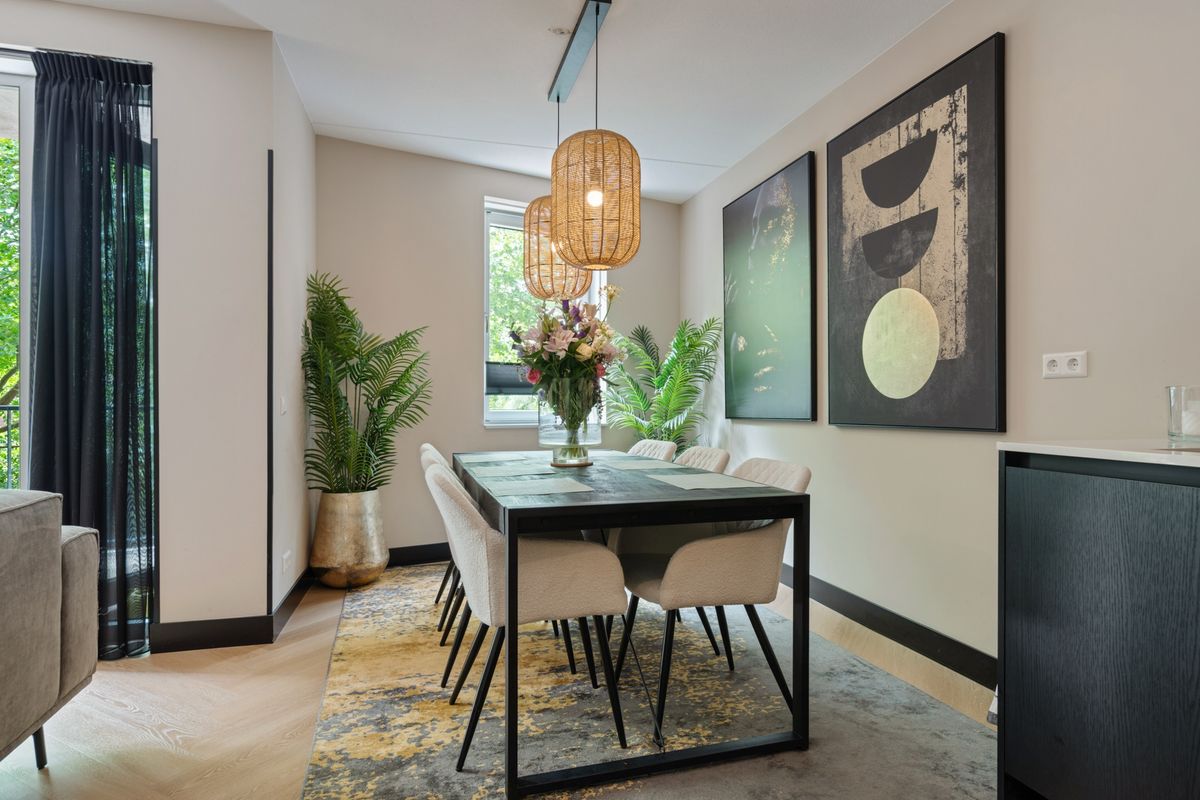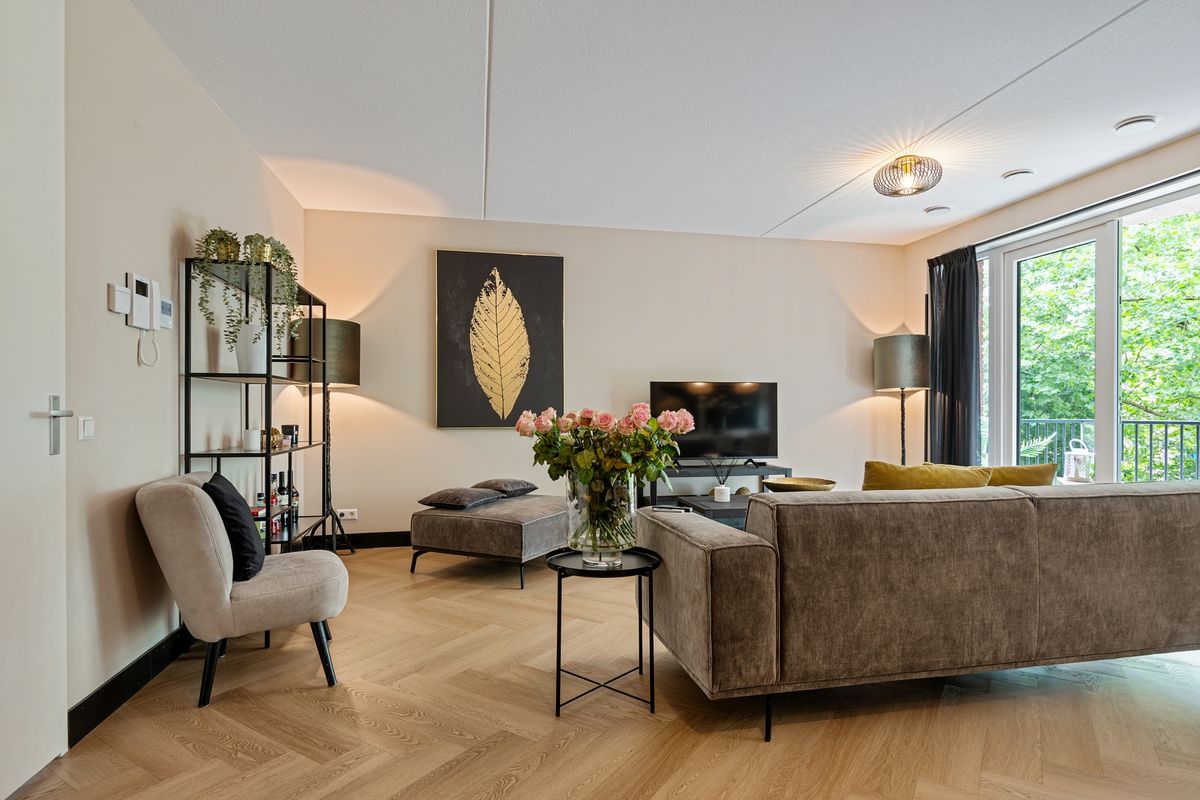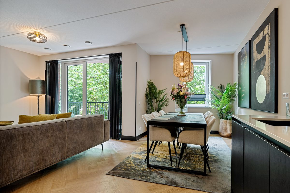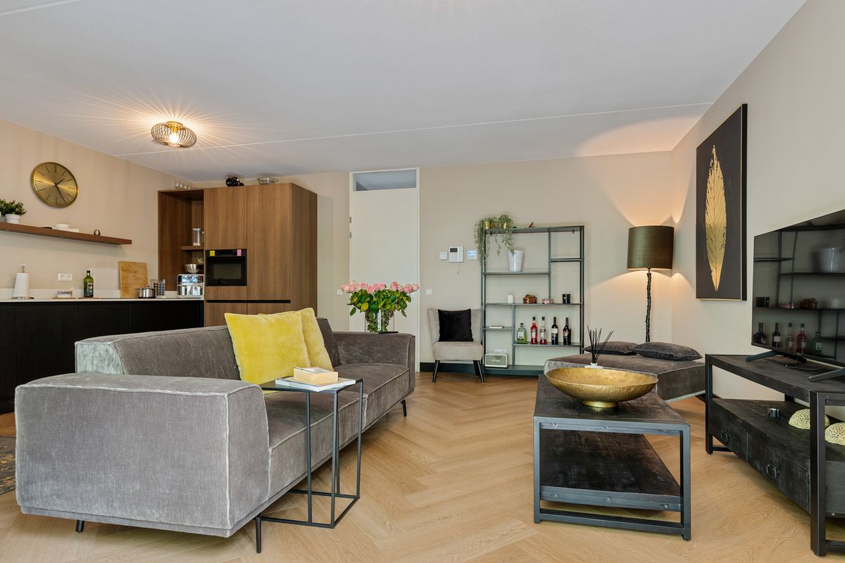 De ruime living is heerlijk licht door de grote raampartij met openslaande deuren naar het balkon op het westen. Hier vang je de zon vanaf de middag tot hij ondergaat. Een gezellige zithoek is direct naast dit balkon gesitueerd. De strakke L-vormige open keuken is voorzien van ingebouwde koel/vries-combinatie, vaatwasser, oven en 4-pits inductie kookplaat. Vanuit de keuken schuif je zo aan de eettafel voor een avond lang tafelen met vrienden of familie.