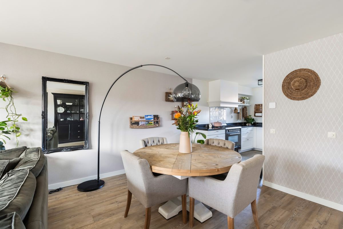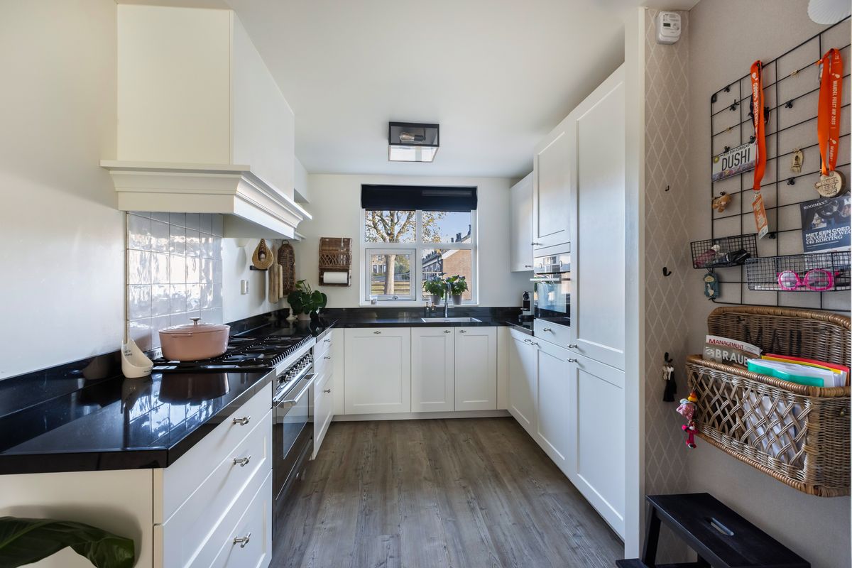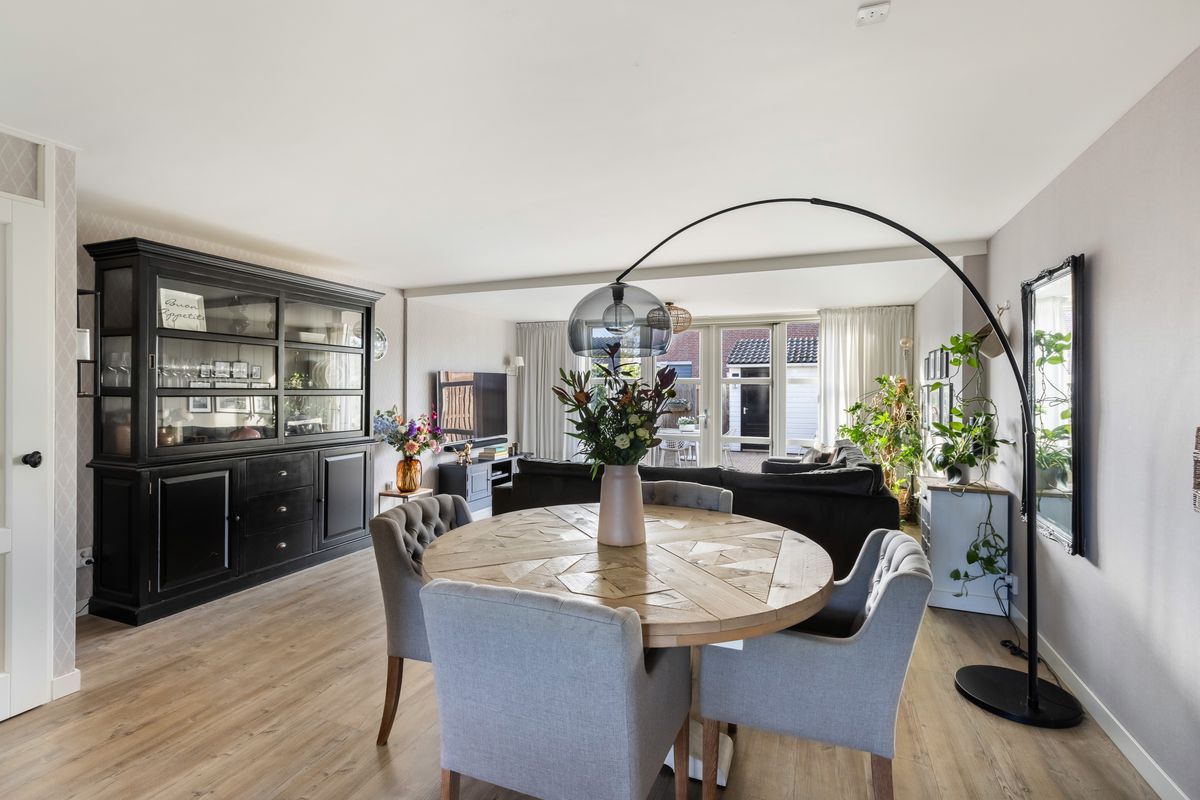 Via de verzorgde voortuin kom je binnen in de hal met meterkast, CV kast, toilet en trapopgang. De woonkamer is uitgebouwd en heeft een prettige lichtinval dankzij de grote ramen en de dubbele tuindeuren naar de achtertuin. De vloerverwarming zorgt in combinatie met de strakke PVC-vloer en neutrale wandafwerking voor een moderne en comfortabele leefruimte. Er is voldoende plek voor een royale zithoek en een grote eettafel waar het gezin samenkomt. De open keuken aan de voorzijde is in 2018 vernieuwd en voorzien van een complete inbouwopstelling met 6 pits-fornuis, oven, afzuigkap, koel-vriescombinatie, vaatwasser, combi-oven en een Quooker. Dankzij de hoekopstelling is er veel werkbladruimte (natuursteen) en opbergruimte.
