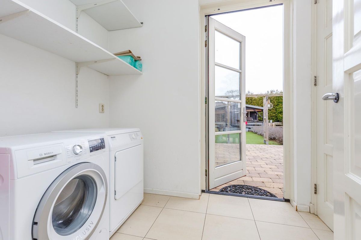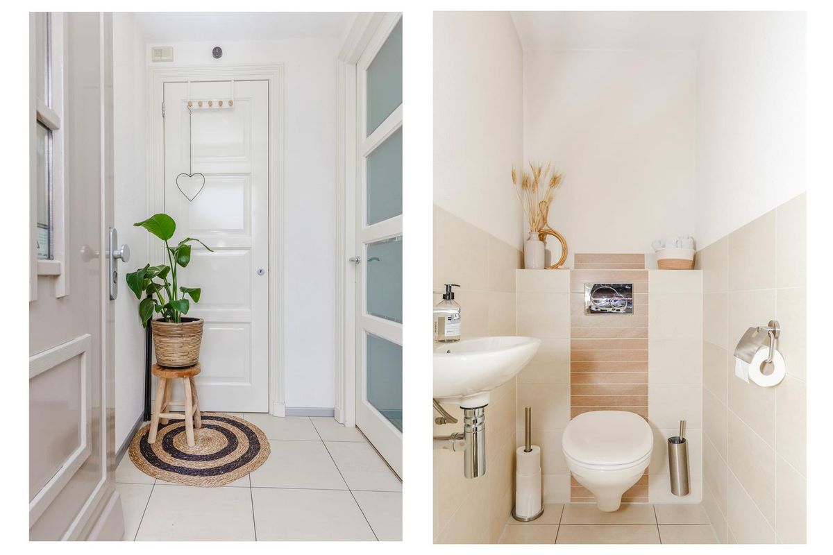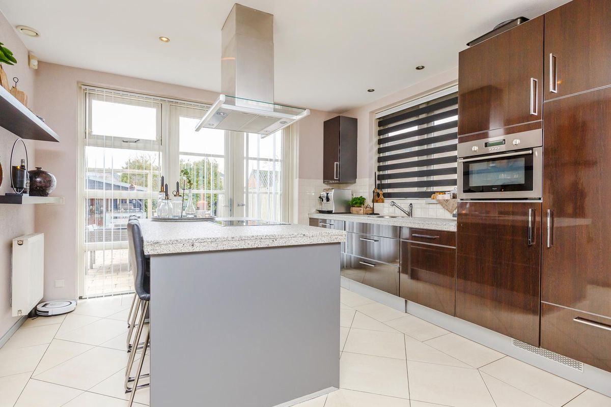 De woonkamer is het kloppend hart van het huis en is aan de zijkant gesitueerd, met een warme, uitnodigende sfeer. Aansluitend vind je de woonkeuken met kookeiland, volledig uitgerust met inbouwapparatuur. Een heerlijke plek om te koken en te leven. Praktisch en slim is de bijkeuken, waar je niet alleen je wasmachine en droger kwijt kunt, maar ook volop opbergruimte hebt. De inpandige garage biedt ruimte voor fietsen of om naar wens in te richten als hobbyruimte. Het toilet is centraal gelegen tussen de keuken en de bijkeuken, bij de trapopgang.