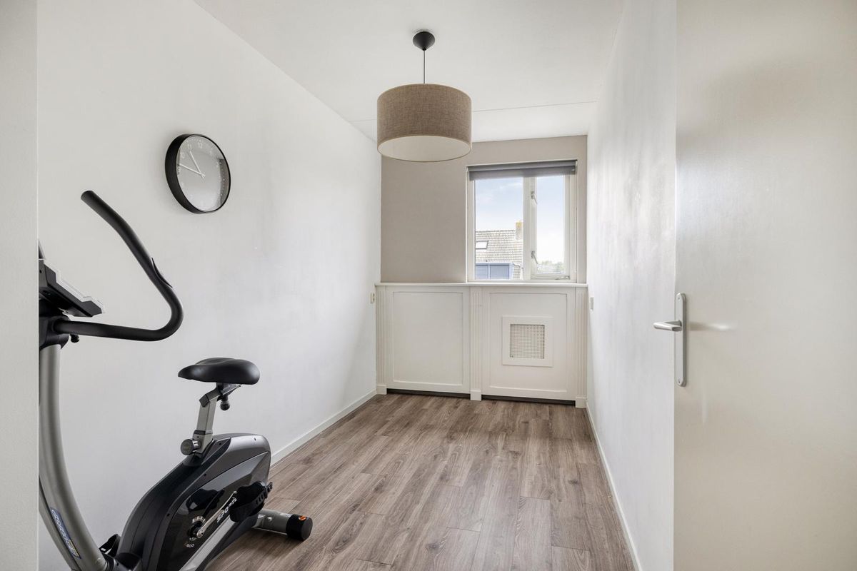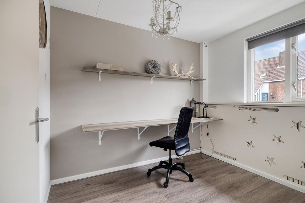De zolderkamer biedt laminaat, stucwanden, platenplafond en een groot dakraam. Een mooie lichte ruimte voor een 4de slaapkamer.