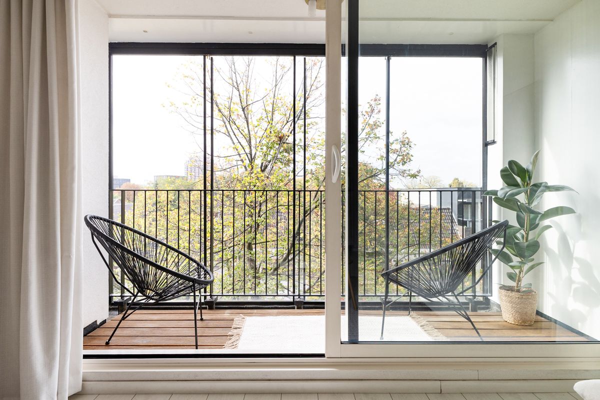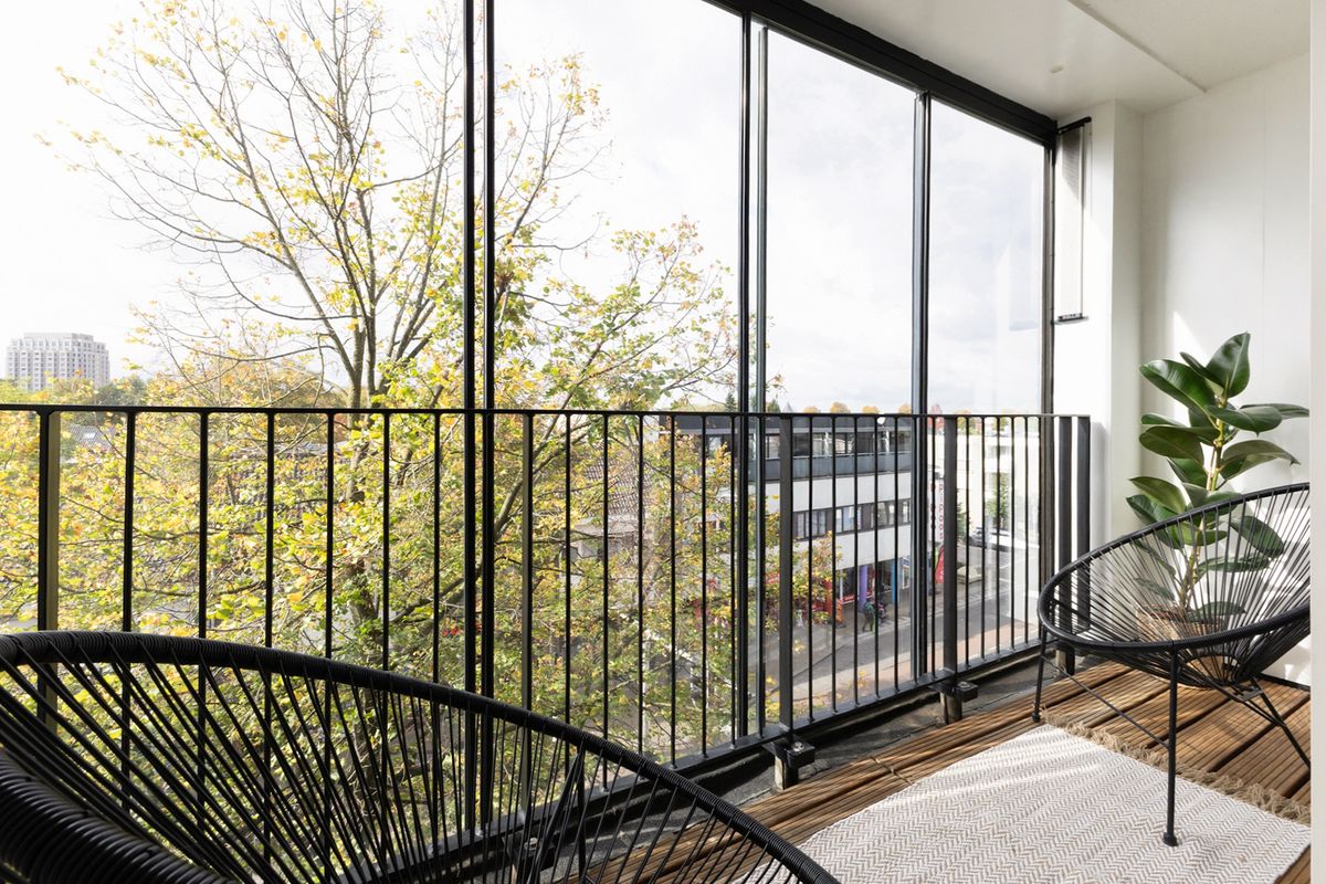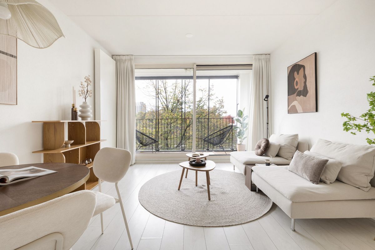 De woonkamer biedt daarnaast toegang tot een groot, zonnig en fijn balkon, waar je heerlijk kan genieten van de zon, het uitzicht en elkaar. Geniet!