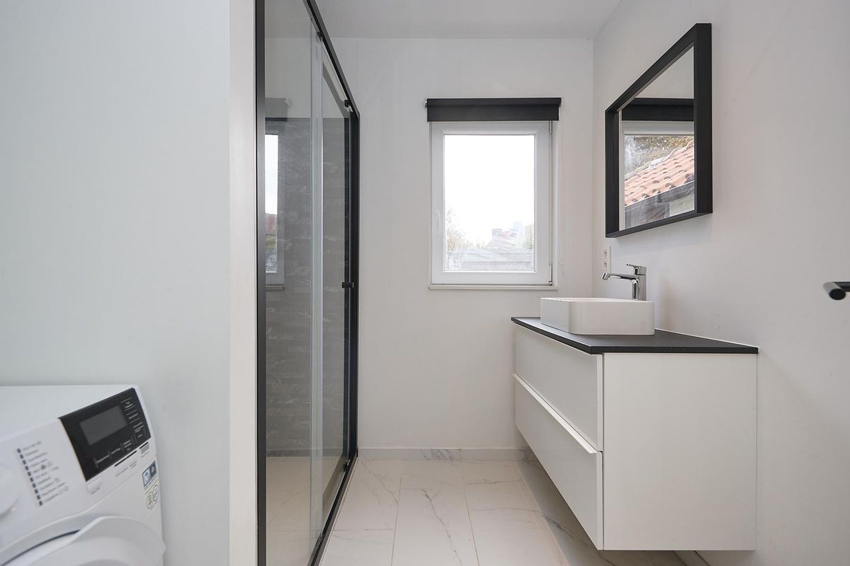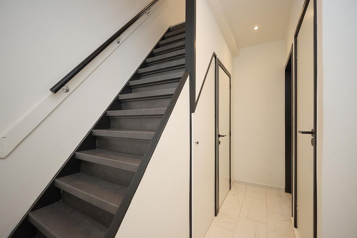Bij binnenkomst komt u in de hal met meterkast, trapkast en de trap naar de eerste verdieping. De lichte woonkamer heeft een moderne laminaatvloer, airconditioning en grote schuifpui naar de tuin, die zorgt voor veel natuurlijk licht. De fraaie zwarte deuren en industriële stijl geven het geheel een moderne uitstraling. De woonkeuken is voorzien van alle benodigde inbouwapparatuur en biedt toegang tot de onderhoudsvriendelijke achtertuin. De moderne badkamer heeft een inloopdouche, wastafelmeubel en wasmachine-drogeraansluiting.