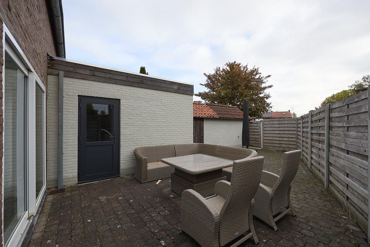 De tuin is gelegen op het Zuidoosten, volledig omheind, betegeld en beschikt over een stenen berging voor extra opslagruimte. De tuin is onderhoudsvriendelijk en biedt zowel aan de voor en achterzijde een poort. Het terras tegen de woning beschikt over een zonnescherm.