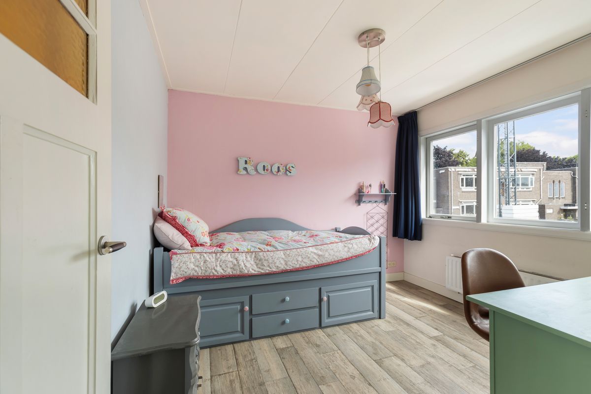 De tweede slaapkamer is een ruime kamer aan de voorzijde met inbouwkast, twee draairamen en een vast raam. De wanden zijn afgewerkt met glasvliesbehang.