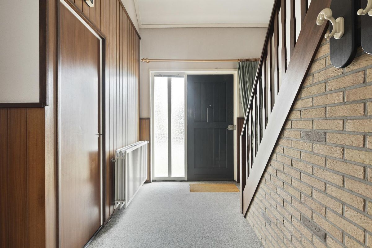 Bij binnenkomst valt direct de royale hal op, met een vide die zorgt voor een ruimtelijk en open gevoel. Vanuit de hal zijn zowel de lichte woonkamer als de keuken bereikbaar. De woonkamer is heerlijk licht dankzij de grote raampartijen en is voorzien van een sfeervolle parketvloer. De ruime doorgang naar de keuken maakt dat beide ruimtes prettig met elkaar in verbinding staan.