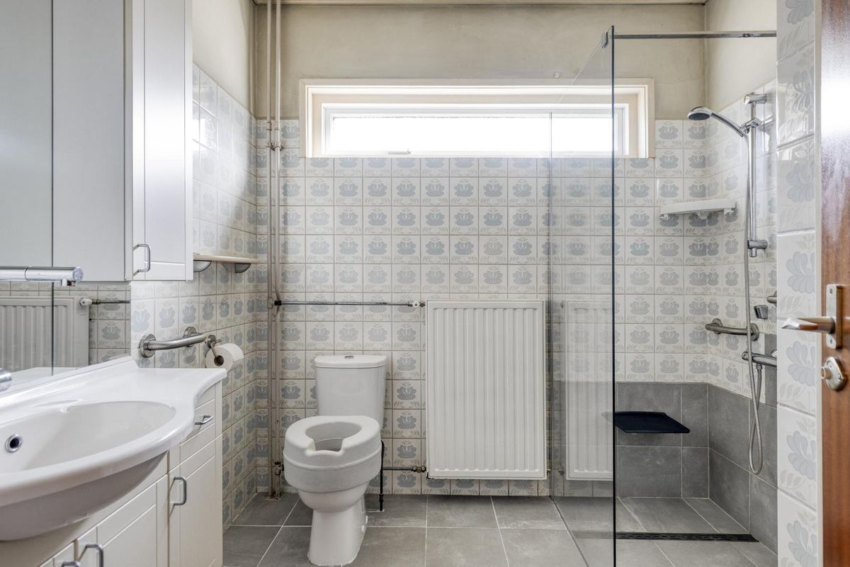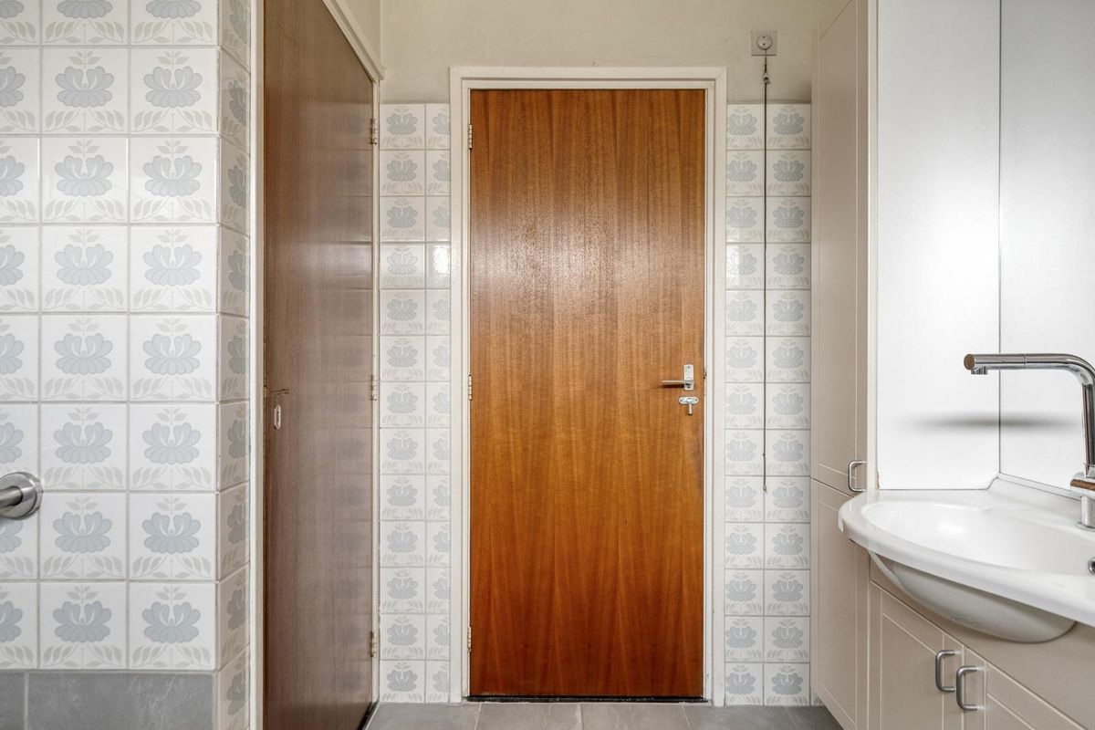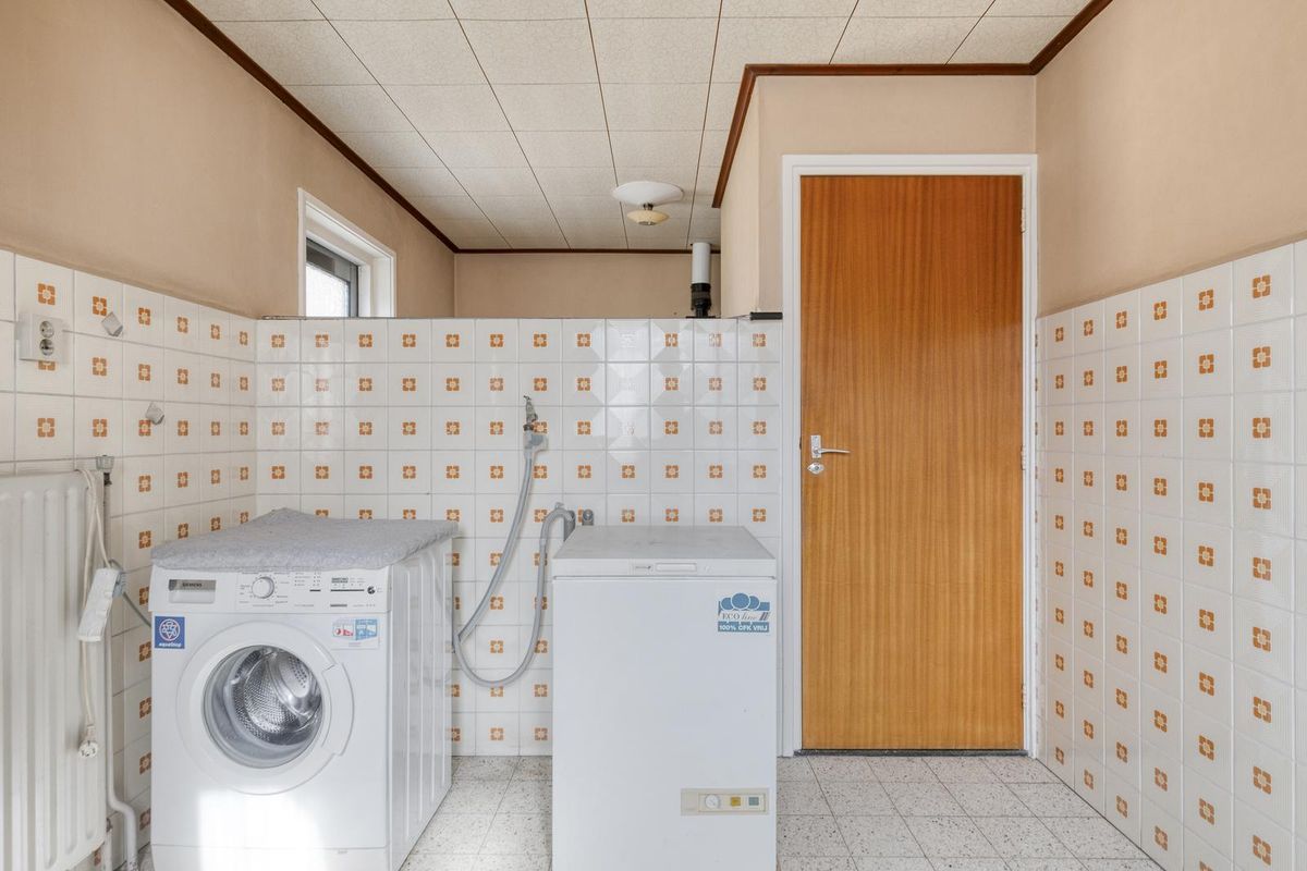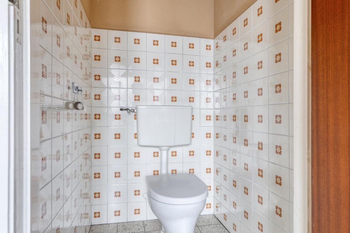Aangrenzend aan de keuken bevindt zich de praktische bijkeuken met toilet, cv-ketel en aansluiting voor de wasmachine.