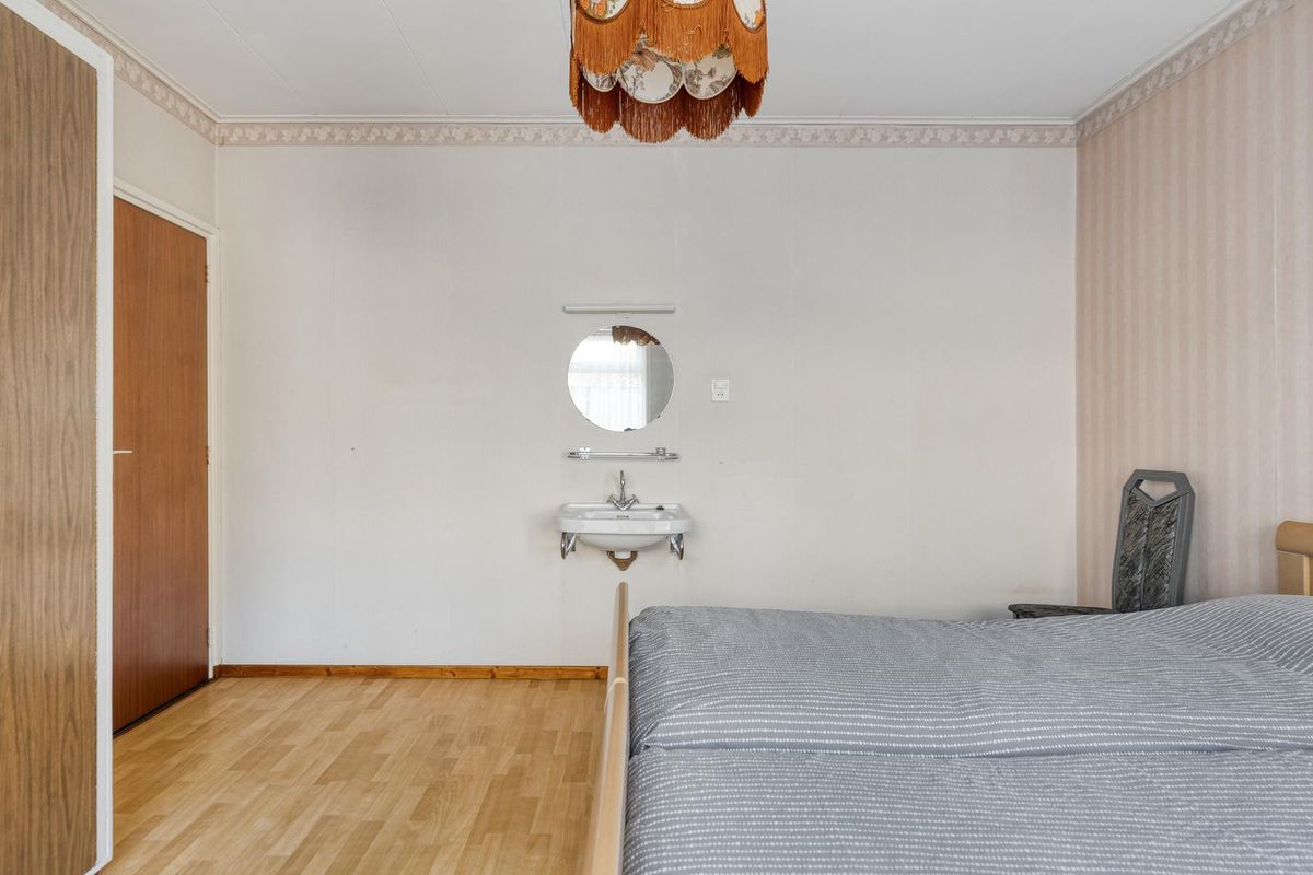 Verder zijn op de begane grond twee slaapkamers en een badkamer aanwezig. De badkamer is uitgerust met een douche, toilet en wastafel met meubel.