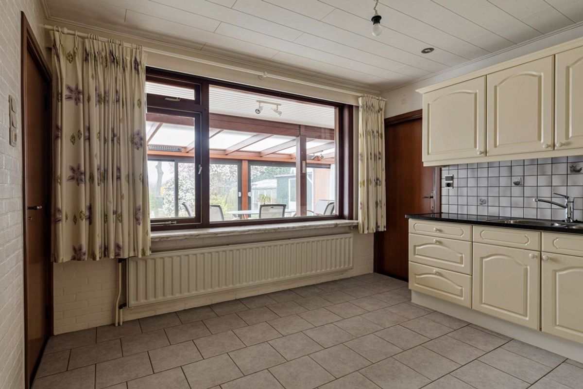 Het absolute hoogtepunt van deze woning is de enorme serre aan de achterzijde. Dankzij de grote schuifpui en het vrije uitzicht over de tuin voelt het hier alsof buiten en binnen volledig in elkaar overlopen. Een plek waar je het hele jaar door kunt genieten van rust, groen en privacy.