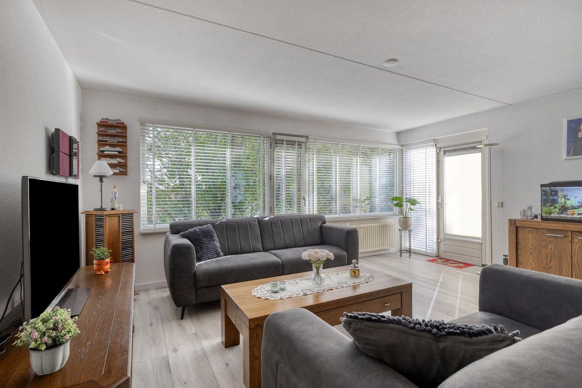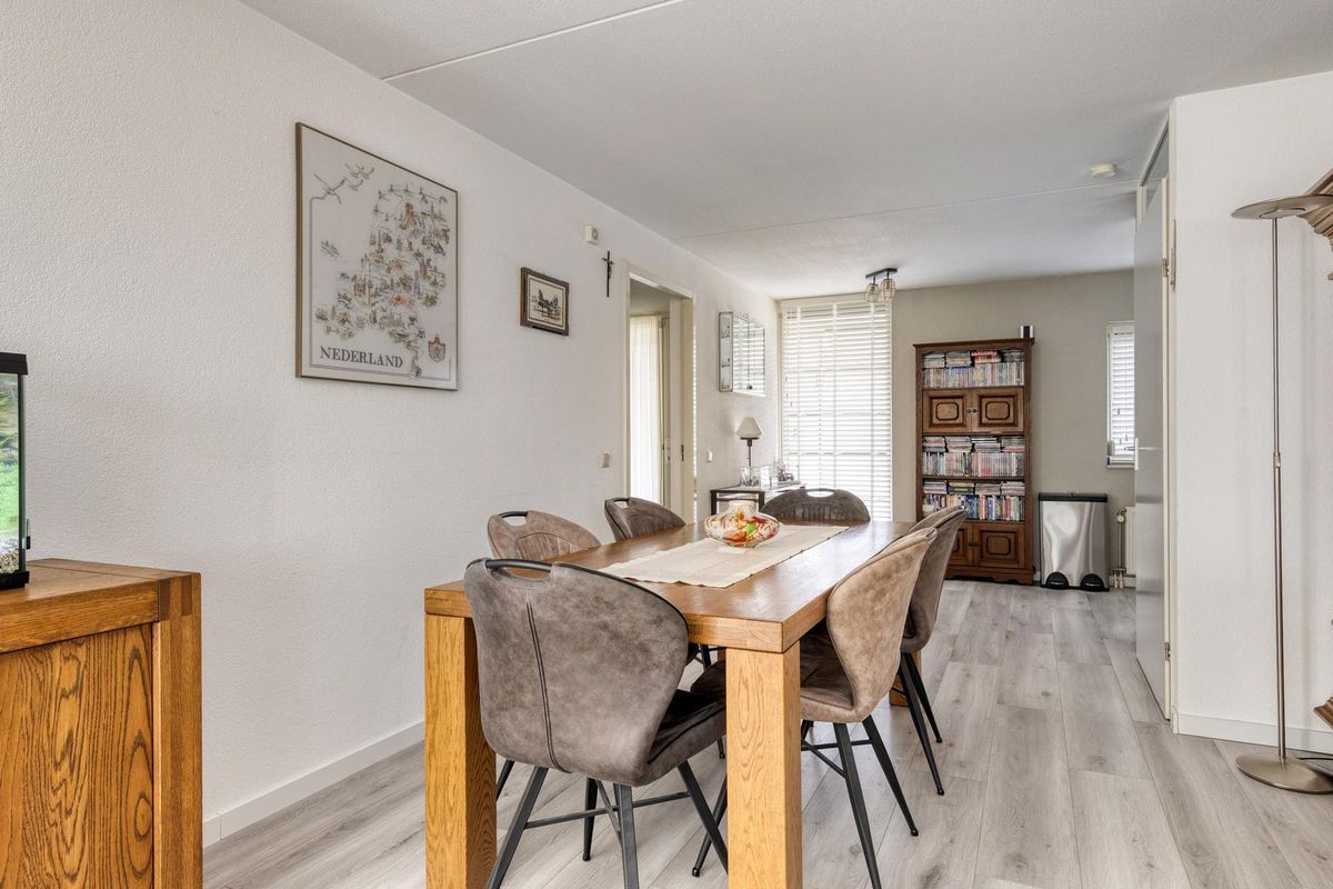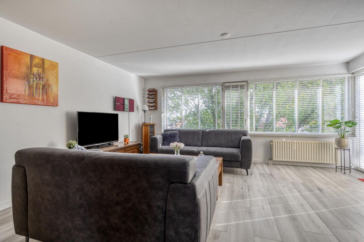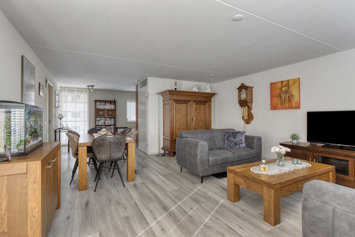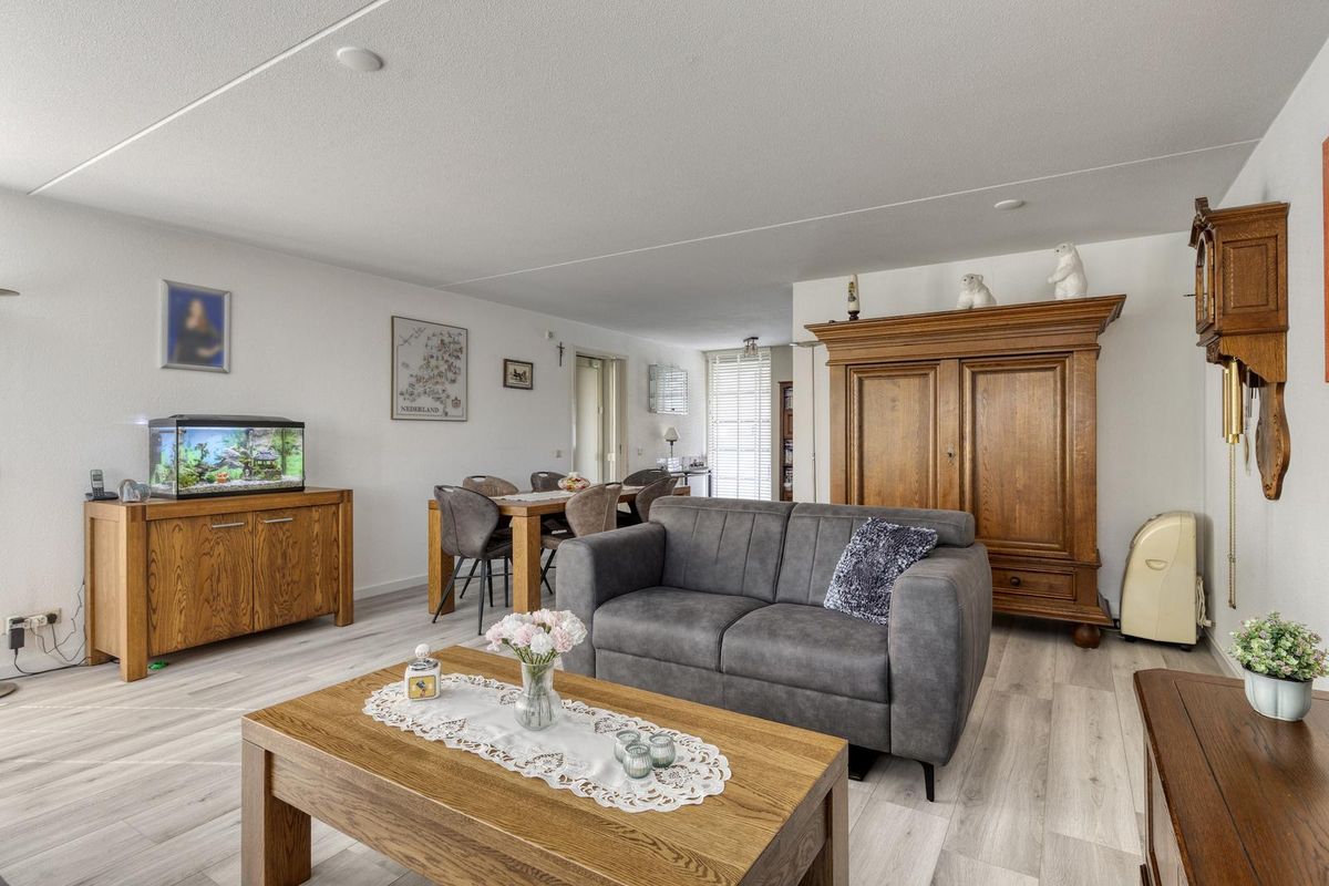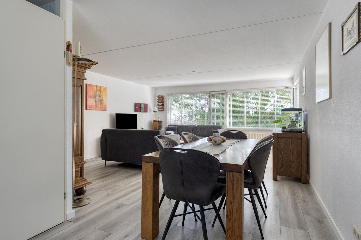 De woonkamer is royaal opgezet en geniet dankzij de grote raampartijen van veel natuurlijk licht. Vanuit de woonkamer is er toegang tot het balkon, waar je volop van de zon kunt genieten. De eetkamer en woonkamer lopen prettig in elkaar over, waardoor er een ruime leefruimte ontstaat.
