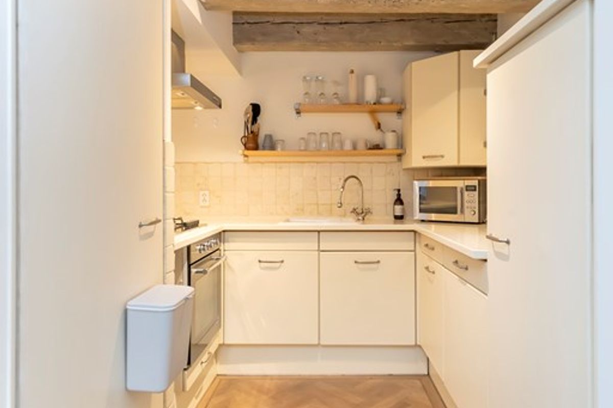 With a view of the Beulingsloot, the water that connects the Singel and Herengracht, near the cozy "De Negen Straatjes" neighbourhood, we offer this spacious furnished 1 bedroom apartment with terrace on the water.