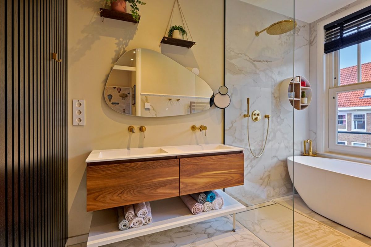 De badkamer en het separate toilet zijn in 2021 volledig gerenoveerd in een stijlvolle hotel-chique afwerking. De badkamer is voorzien van een ligbad, een inloopdouche en een dubbel wastafelmeubel met ingebouwde kranen. Ervaar luxe, comfort en rust in perfecte balans.
