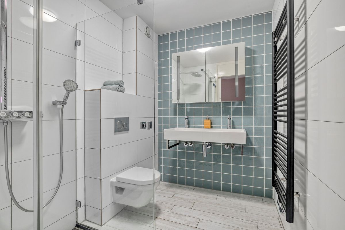 Op de eerste verdieping bevinden zich drie slaapkamers, waaronder een master bedroom met Frans balkon en ingebouwde kast. De moderne badkamer (2018) beschikt over een inloopdouche met regendouche, een dubbele wastafel, een hangend toilet en een designradiator. Op de overloop is een praktische kast met aansluiting voor wasmachine en droger, waardoor alle dagelijkse voorzieningen binnen handbereik zijn.
