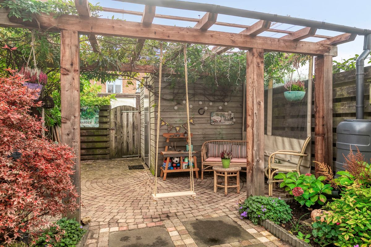 Met een perceel van 116 m² en een achtertuin gelegen op het zuiden weet u één ding zeker: hier beleeft u het buitenleven in volle overtuiging. De tuin is in 2023 voorzien van een nieuwe overkapping – ideaal bij tropische zomers of als u ook ’s avonds graag buiten zit. Een vrijstaande houten berging biedt veel opbergruimte zonder dat het tuinplezier in het gedrang komt, en een zonnescherm zorgt voor aangename schaduw. Bovendien is alvast de fundering gelegd voor een eventuele uitbouw, zodat u de mogelijkheid heeft om de woonruimte in de toekomst te vergroten.
