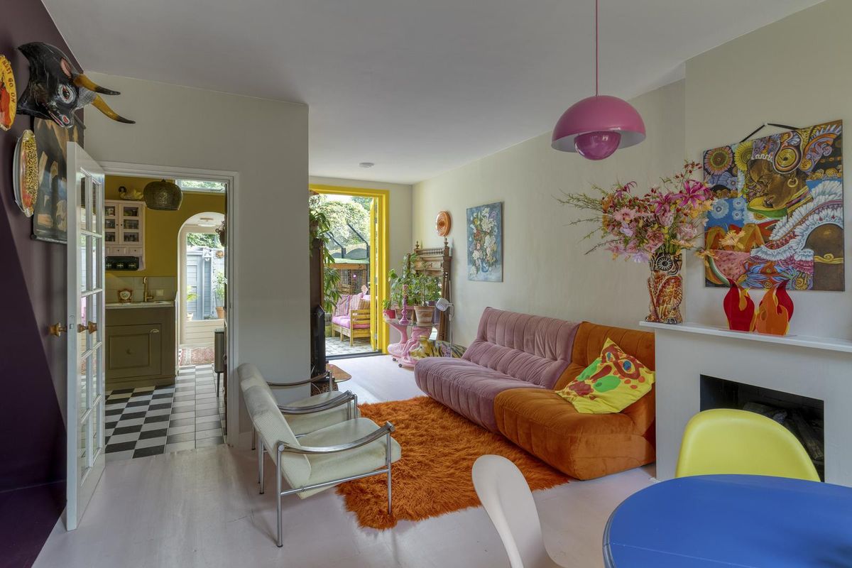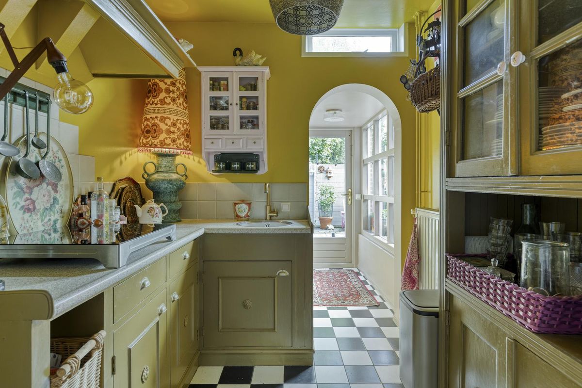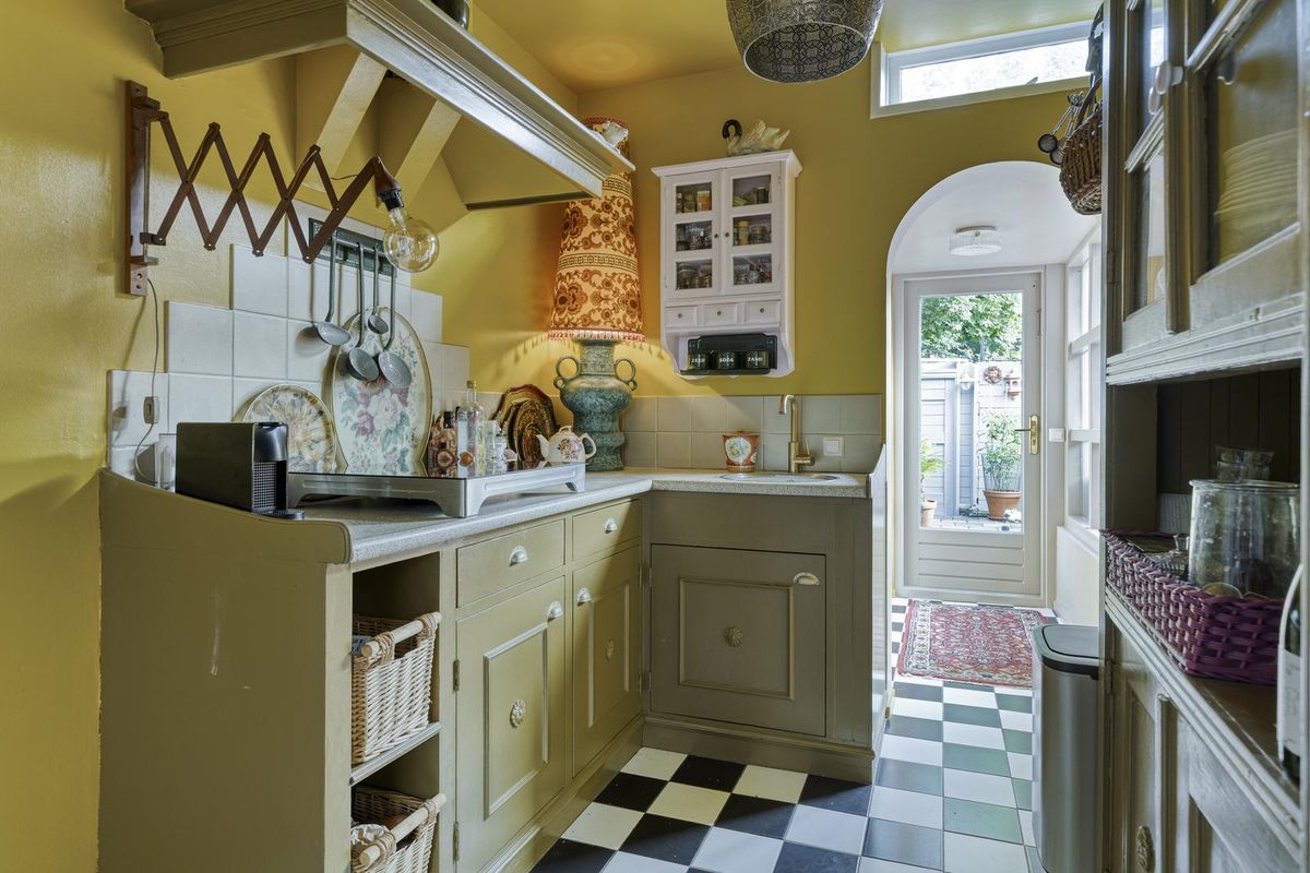 Bij binnenkomst wordt u verwelkomd in de entree waar ook de meterkast en garderobe aanwezig is. Via de hal loopt u de gezellige woonkamer in. Hier is een eethoek gesitueerd aan de voorzijde van de woning, bij een sfeervolle elektrische haard (ter overname), ideaal voor knusse diners en ontspannen momenten. Er zijn natuurlijk verschillende opstellingen mogelijk. De woonkamer is verder licht met openslaande deuren die direct toegang bieden tot de achtertuin, waardoor binnen en buiten met elkaar verbonden zijn. De landelijke keuken is ingericht met een L-vormig keukenblok, voorzien van een spoelbak en een karakteristieke originele schouw, wat de authentieke sfeer van de woning versterkt. Achter de keuken ligt de praktische bijkeuken, uitgerust met een toilet en een opstelplaats voor de wasmachine. De bijkeuken beschikt over een mooie raampartij met roedeverdeling en een deur die direct toegang biedt tot de achtertuin, waardoor er veel daglicht binnenkomt en er een prettige verbinding met de tuin is.