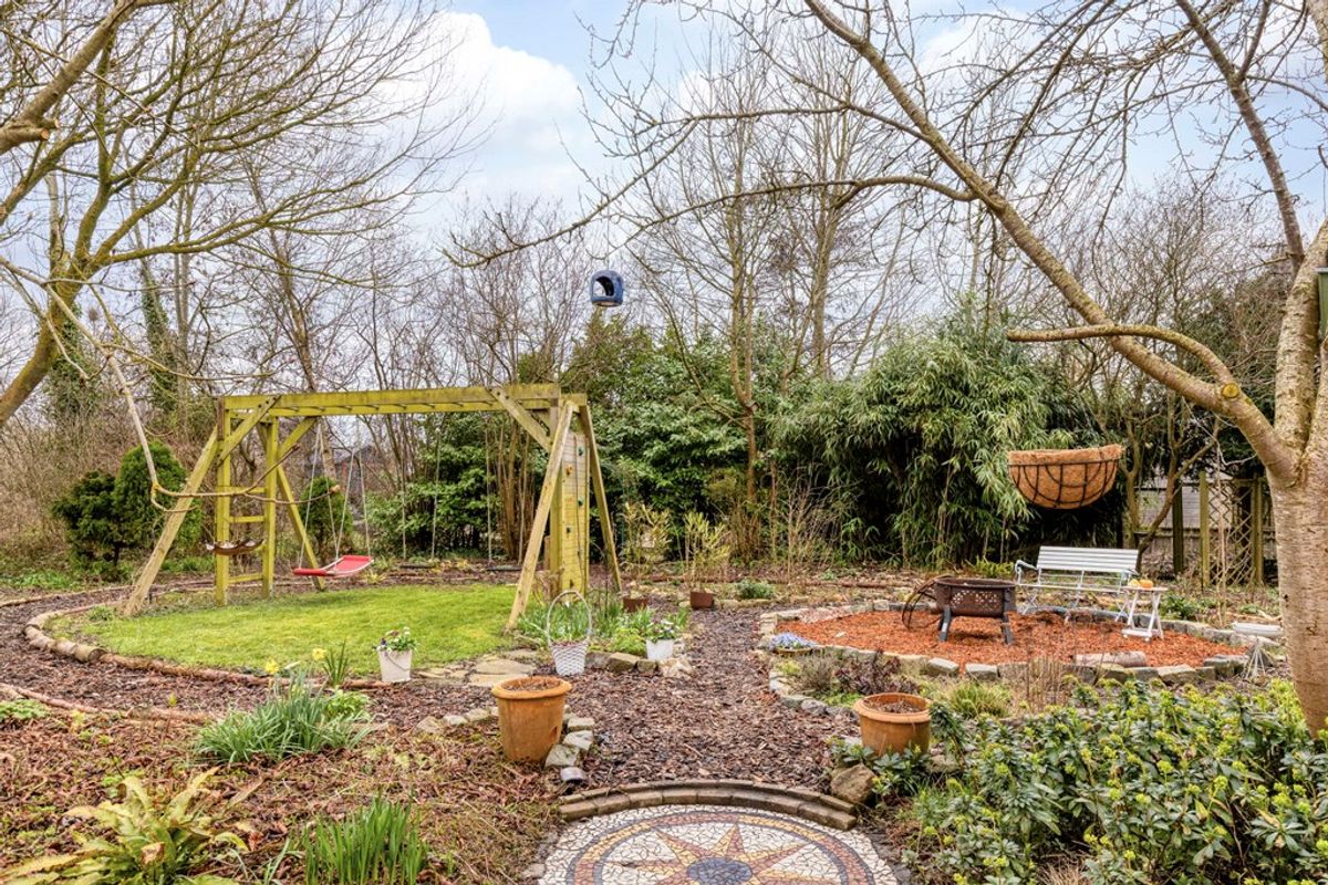In de zuidwestelijk gelegen, privacyvolle, diepe en breed uitwaaierende achtertuin (gemiddeld 30 m diep en 15 m breed bij de woning tot 25 m breed bij het vaarwater) is veel te ontdekken. Zo staan er diverse fruitbomen (kers, appel, pruim, peer), maar ook een esdoorn, hazelaar en laurier. In het lommerrijke, achterste deel van de tuin staat heel romantisch een bankje en kan er door kinderen heerlijk gespeeld en hutten gebouwd worden. Langs de diverse pergola’s klimmen mooie bloeiers. Vanaf uw terras is er altijd genoeg te zien en, de tuin blijft ook in de winter groen, wat zorgt voor maximale privacy! Halverwege de zijtuin wordt de tuin afgesloten middels een poortdeur. U kunt de tuin dus ook buitenom bereiken. De houten berging voor twee containers, en een tweede houten en een aluminium tuinhuisje blijven voor u achter, ideaal voor al uw tuinspullen. Ook de houten overkapping naast de woning, nu bestemd voor fietsen, blijft staan. Op de gevel is een buitenkraan gemonteerd en een zonnescherm. De besproeiingspomp met professioneel beregeningsysteem blijft ook voor u achter waardoor u op efficiënte wijze zowel de achter- als de voortuin vanuit uw luie stoel kunt beregenen. Ook de robuuste driedubbele schommel met klauterrek (2020) blijft.