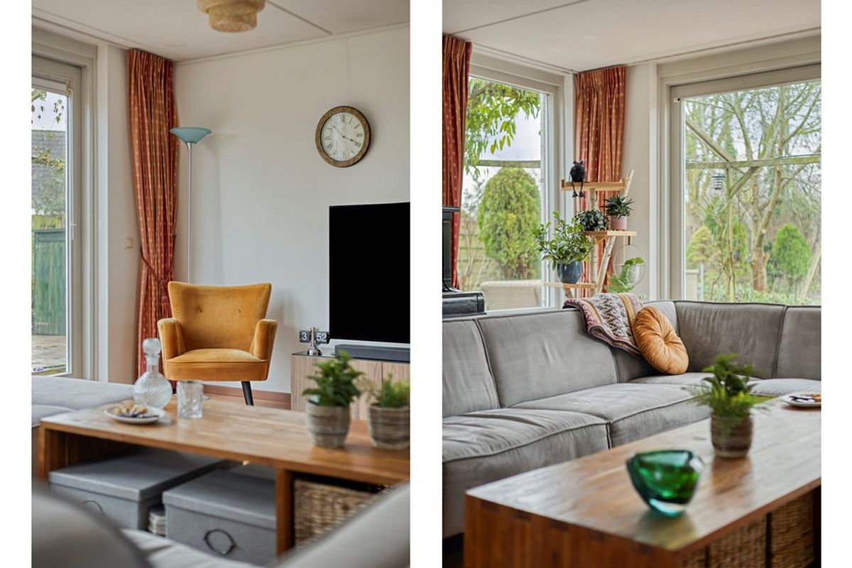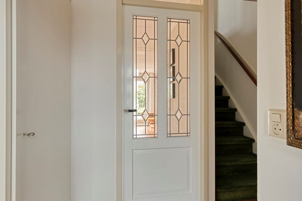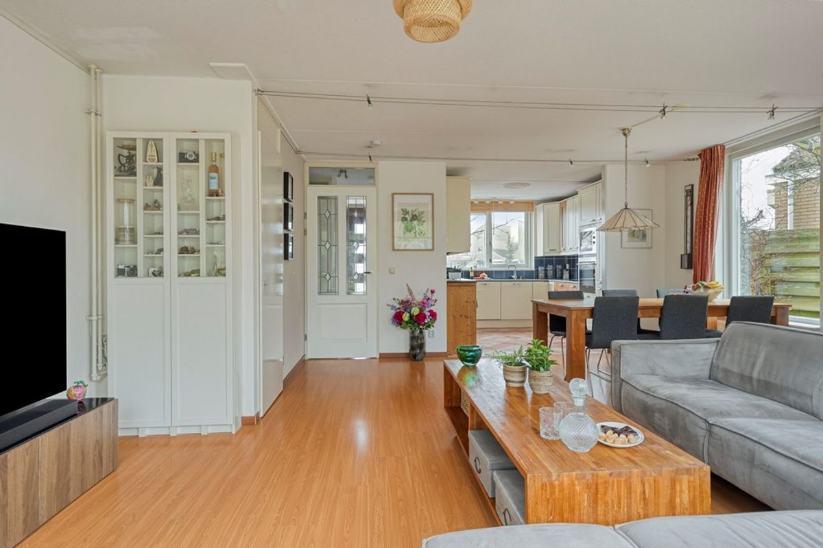 Bij binnenkomst via de glas-in-lood binnendeur in de living lonkt meteen de fraaie achtertuin die over de volle breedte (5,69 m) te zien is! Vanwege de brede schuifpui en de twee grote zijramen heeft deze ruimte een maximale natuurlijke lichtinval. Geweldige ruimte waarbij iedere opstelling van zithoek een eethoek denkbaar is! Natuurlijk is er ook de onmisbare ruime trapkast met een aantal planken voor uw spullen.