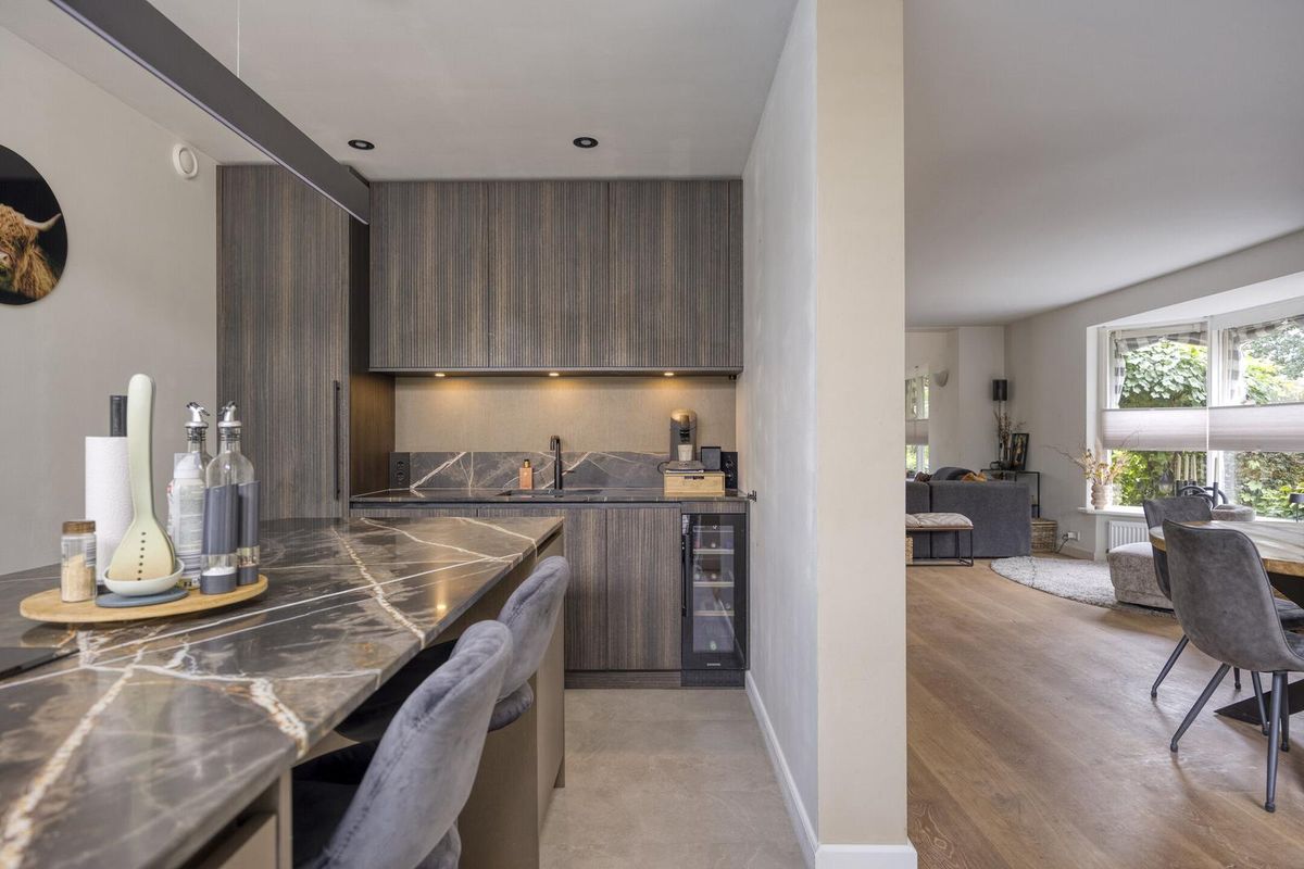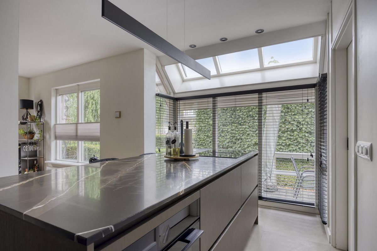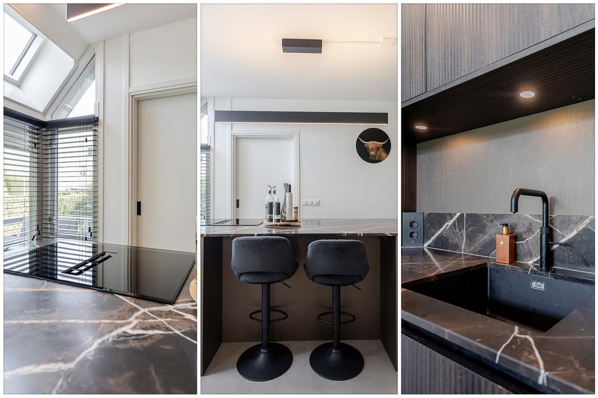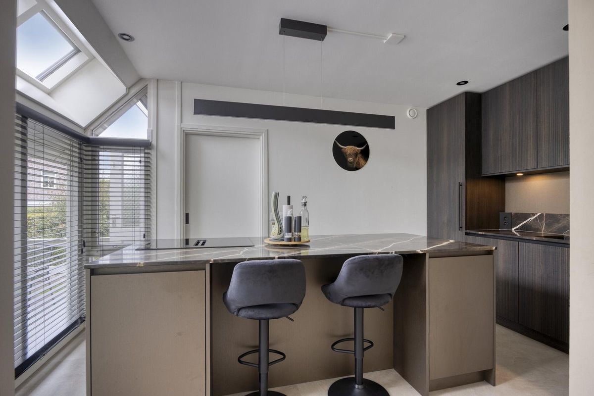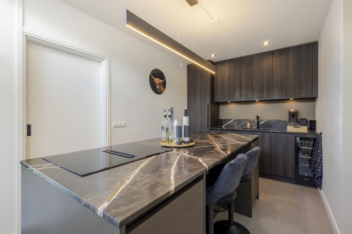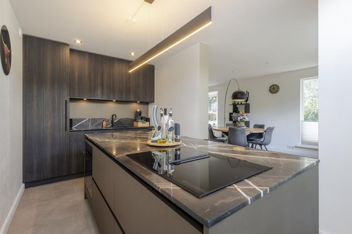 • Splinternieuwe keuken met kookeiland en moderne inbouwapparatuur.