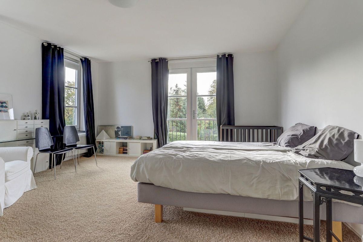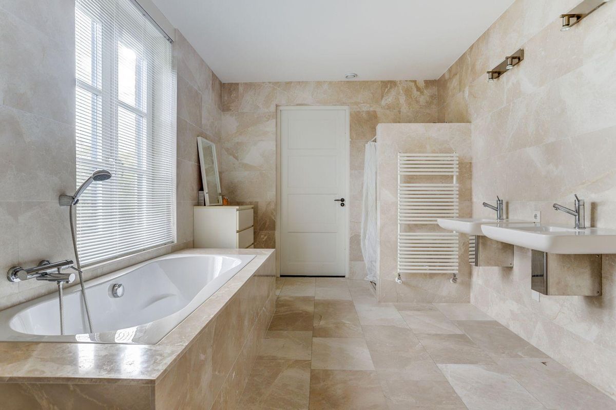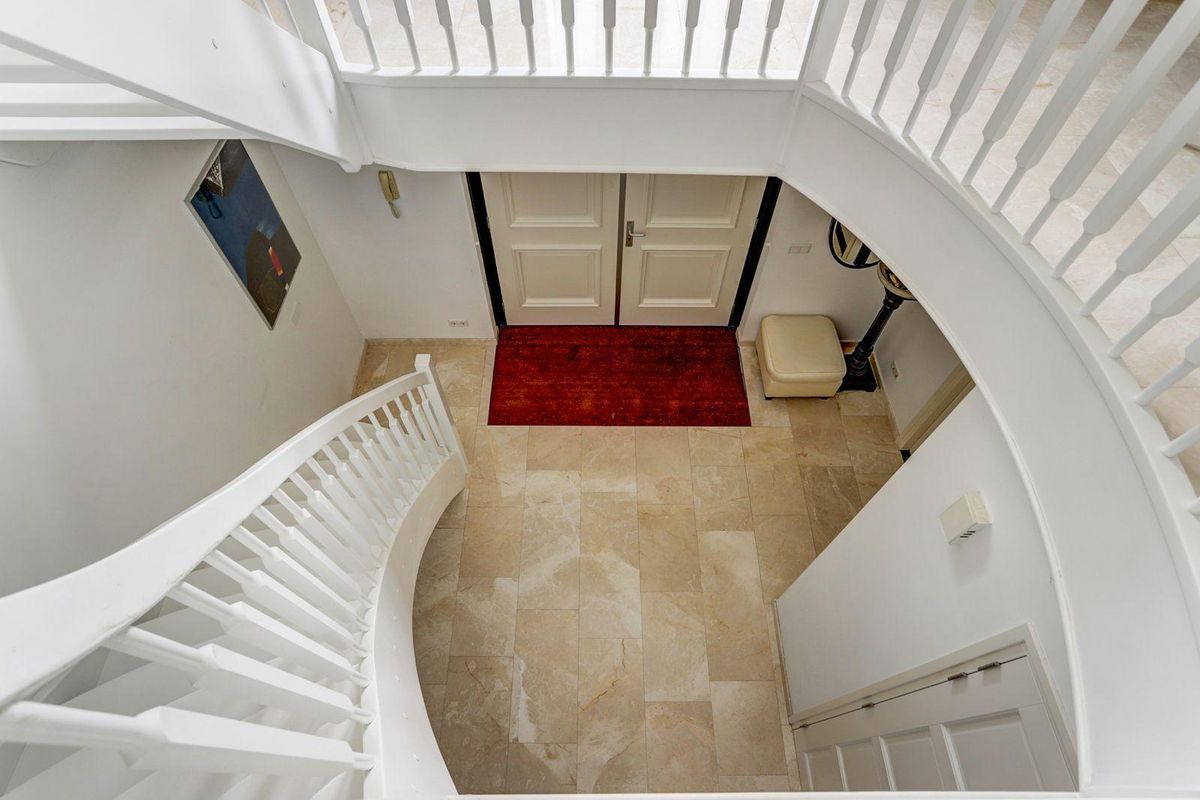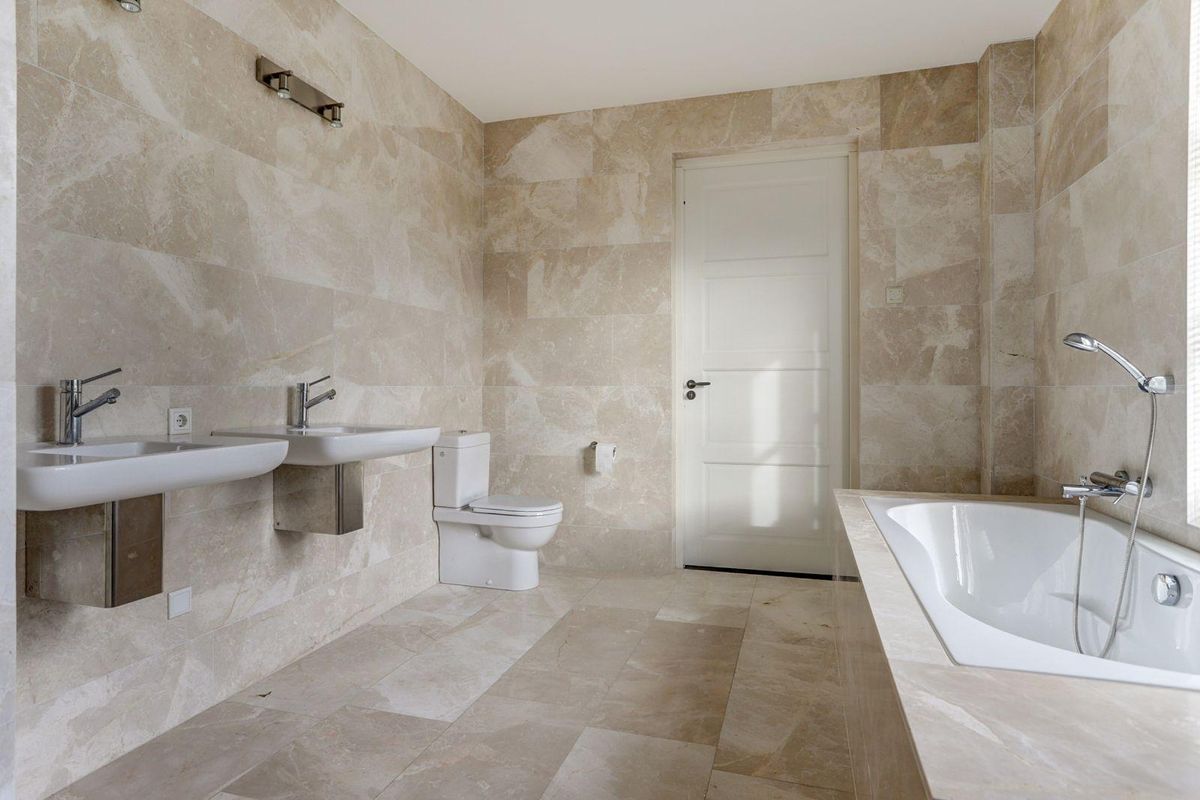 De imposante trap leidt naar de eerste verdieping met een royale overloop en vide. Hier bevinden zich vier ruime slaapkamers, waarvan één met vaste inloopkast. De hoofdbadkamer, toegankelijk vanuit twee slaapkamers, is voorzien van een ligbad, aparte douche, toilet en dubbele wastafel. Daarnaast is er nog een derde badkamer met douche, toilet en wastafel op de overloop.