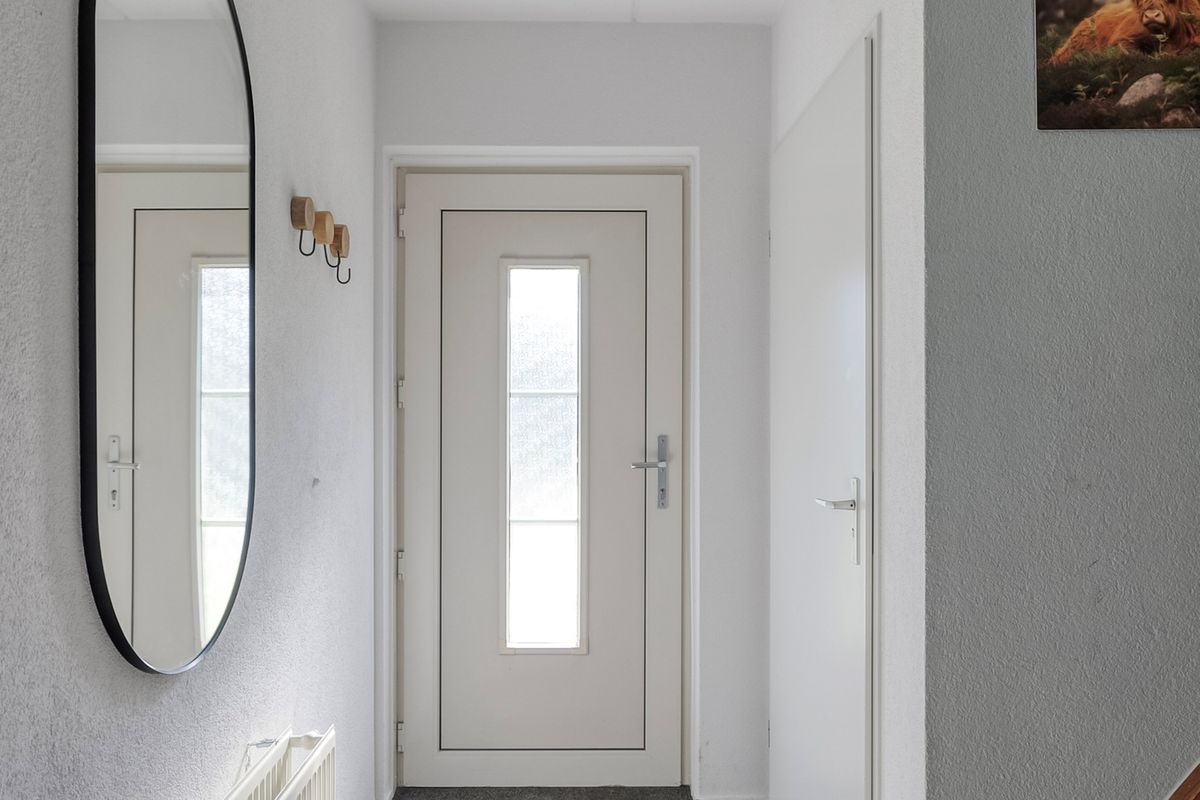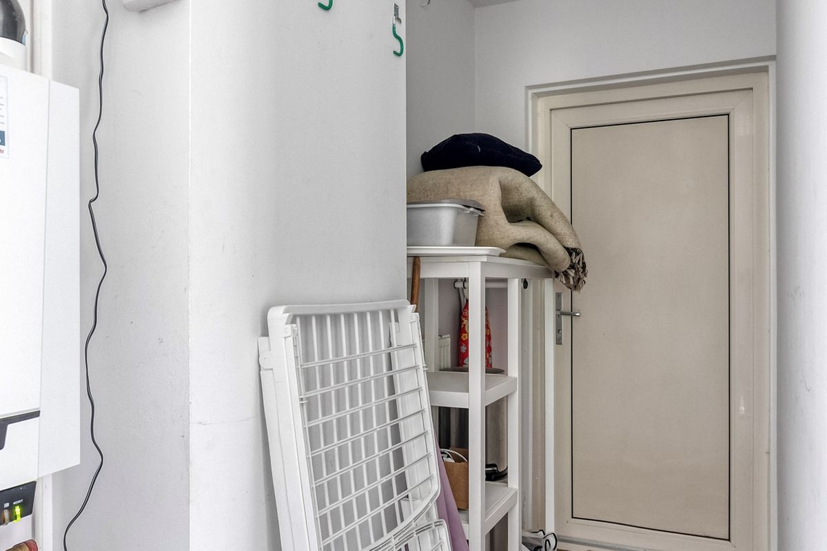 Entree/hal met trapopgang, slaapkamer en de moderne badkamer voorzien van een toilet, douchehoek en een wastafel in meubel. De woonkamer beschikt over veel daglicht, openslaande terrasdeuren, trapkast en een keukenblok met diverse inbouwapparatuur, o.a. een vaatwasser, gaskookplaat, afzuigkap, koelkast en een combimagnetron. Via de hal bereikt u ook de bijkeuken voorzien van een deur naar de tuin. De meterkast is via de buitenzijde bereikbaar.