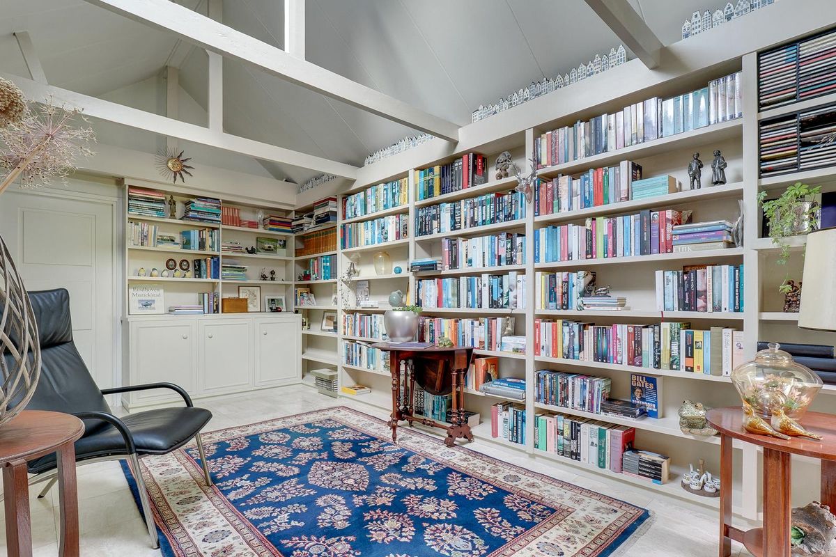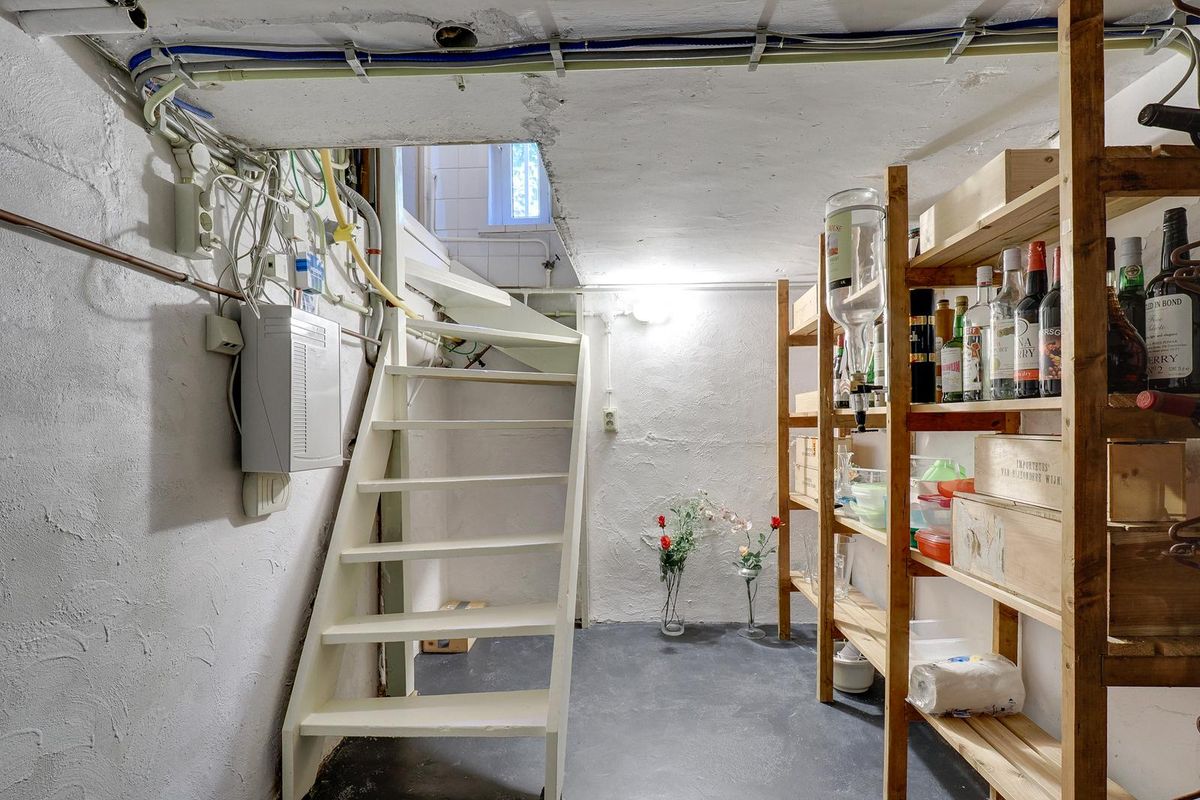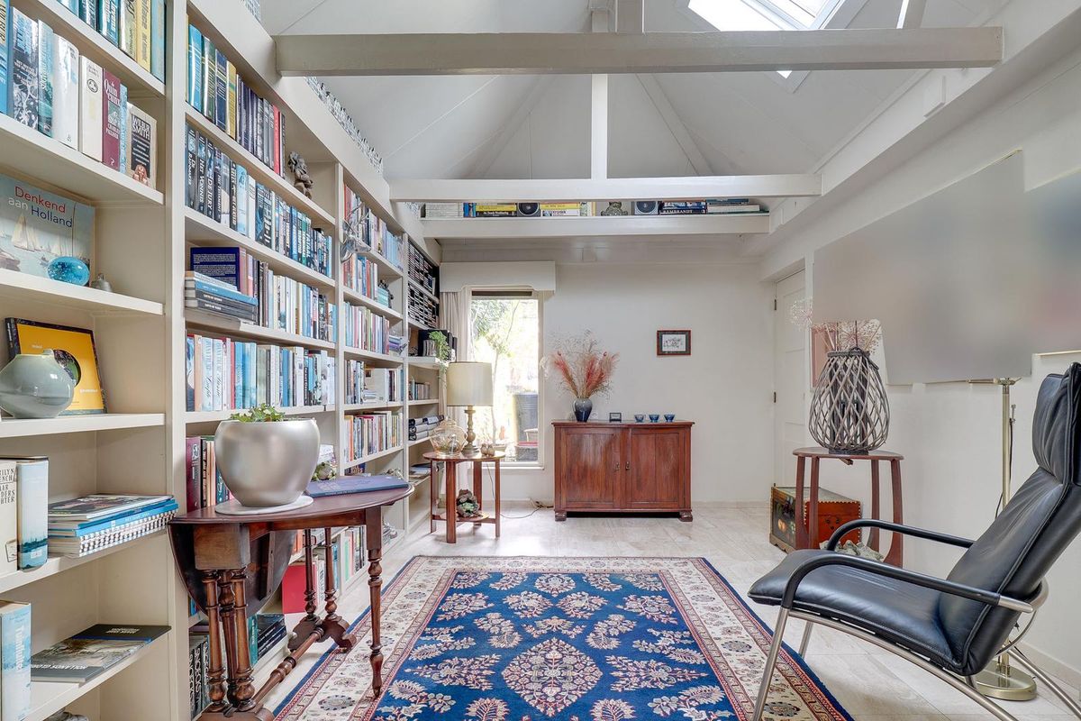 Bij binnenkomst valt direct de warme, uitnodigende sfeer op. De begane grond beschikt over een ruime hal met separaat toilet, een lichte eetkamer met sfeervolle gashaard en een woonkamer die hier naadloos op aansluit. Aan de achterzijde bevindt zich een bibliotheek, met aangrenzend een praktische bijkeuken voorzien van de cv-opstelling en directe toegang tot de tuin. De centrale keuken is uitgerust met diverse inbouwapparatuur en vanuit hier leidt een vaste trap naar de kelder, die met een stahoogte van circa 1.70 meter ideaal is als wijnkelder of opslag.