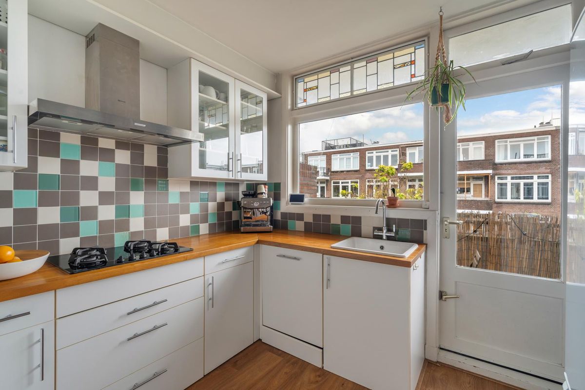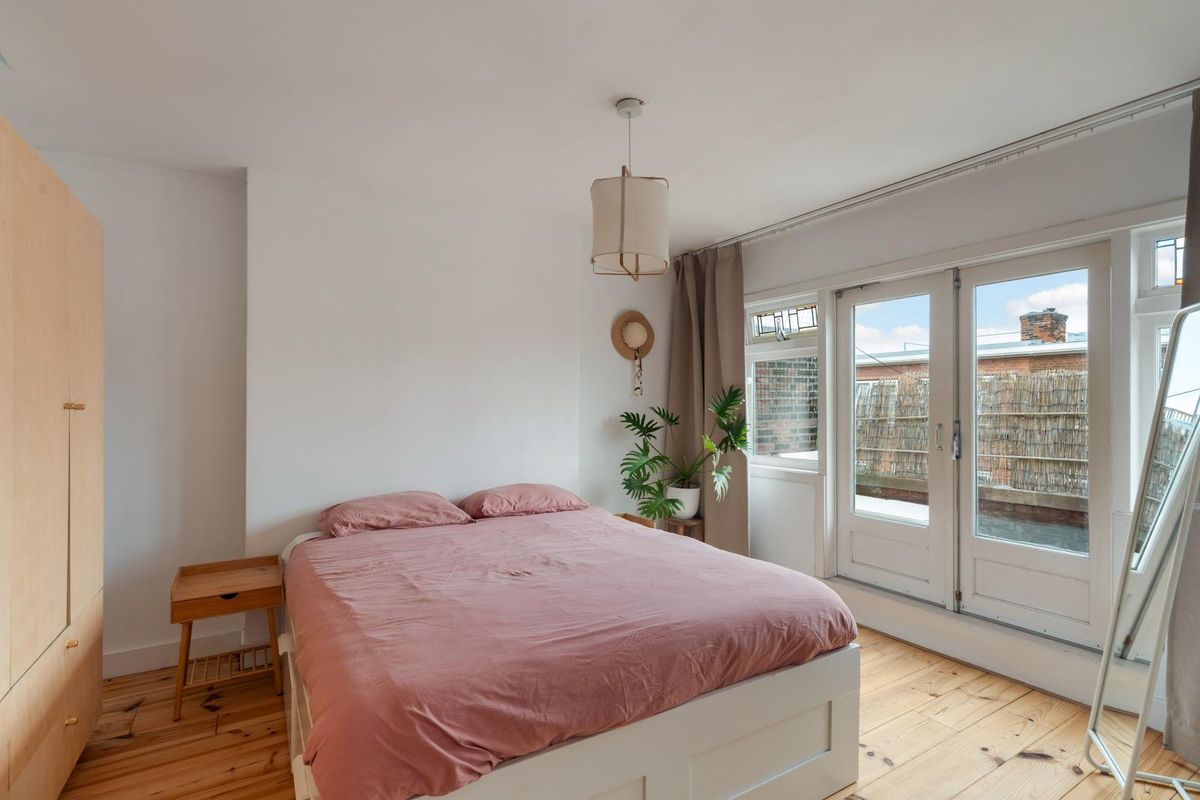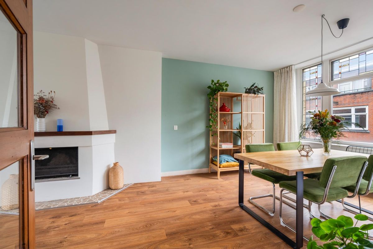 Overloop met meterkast, separaat toilet en toegang tot alle vertrekken. De royale woon-/eetkamer heeft maar liefst een lengte van ca. 10 meter lang! Door de grote raampartijen (die nog beschikken over het authentieke glas-in-lood) aan beide zijden van de woning treedt er veel natuurlijk licht de woning binnen, wat zorgt voor een fijne sfeer. Het zitgedeelte bevindt zich aan de achterzijde van de woning en vormt een fijne plek om te ontspannen. De eetkamer is gelegen aan de voorzijde van de woning en beschikt over voldoende ruimte voor een grote eettafel. De moderne keuken beschikt over diverse inbouwapparatuur zoals een 4-pits gasfornuis met afzuigkap, oven, vaatwasser en voldoende opbergruimte. De keuken biedt toegang tot het 1e balkon op het noordwesten. De 1e slaapkamer is gelegen aan de voorzijde en biedt voldoende ruimte voor een tweepersoonsbed en een kledingkast.