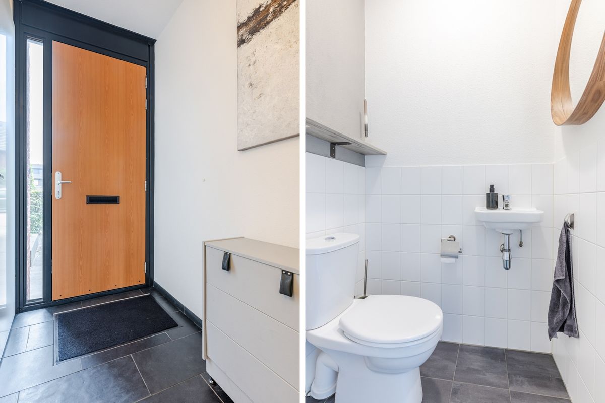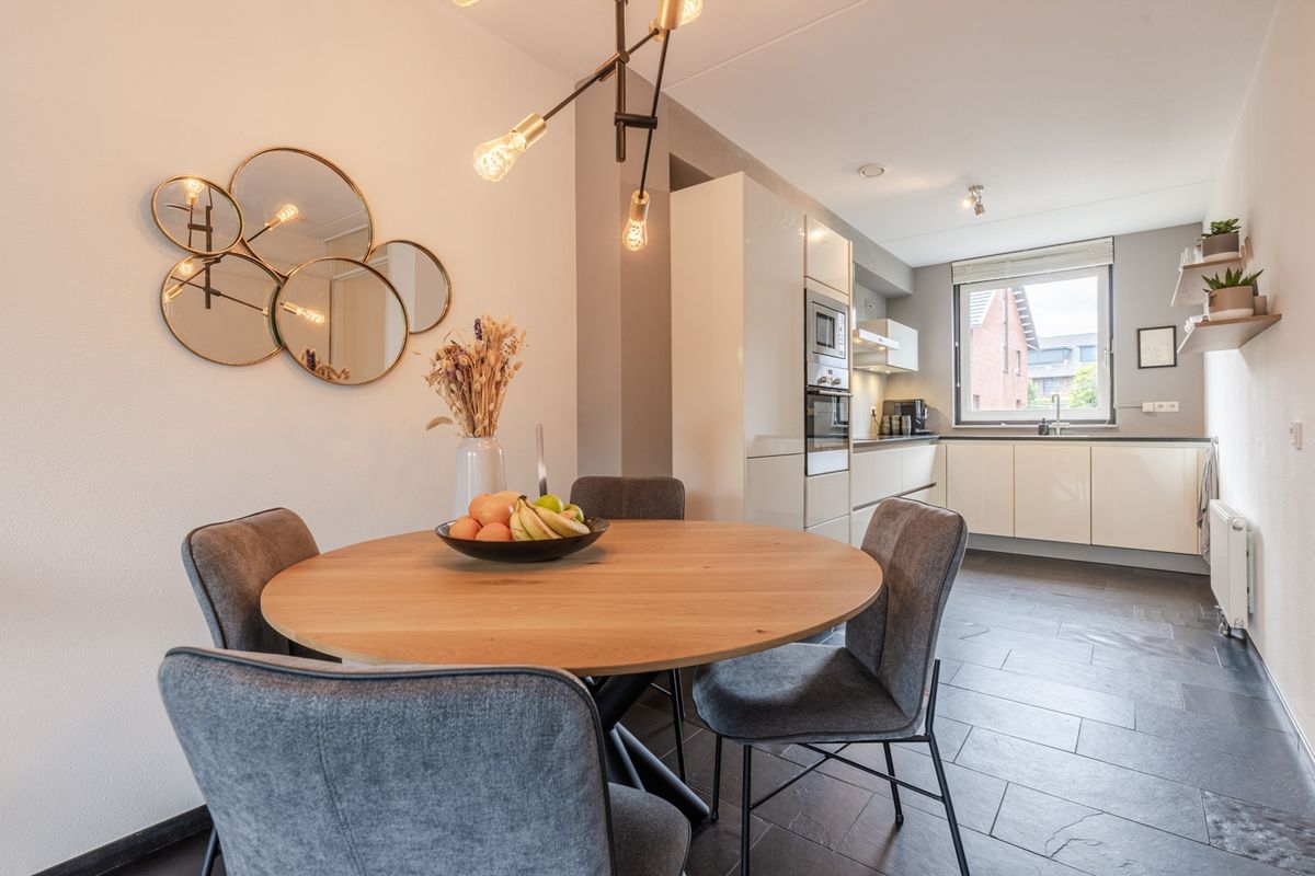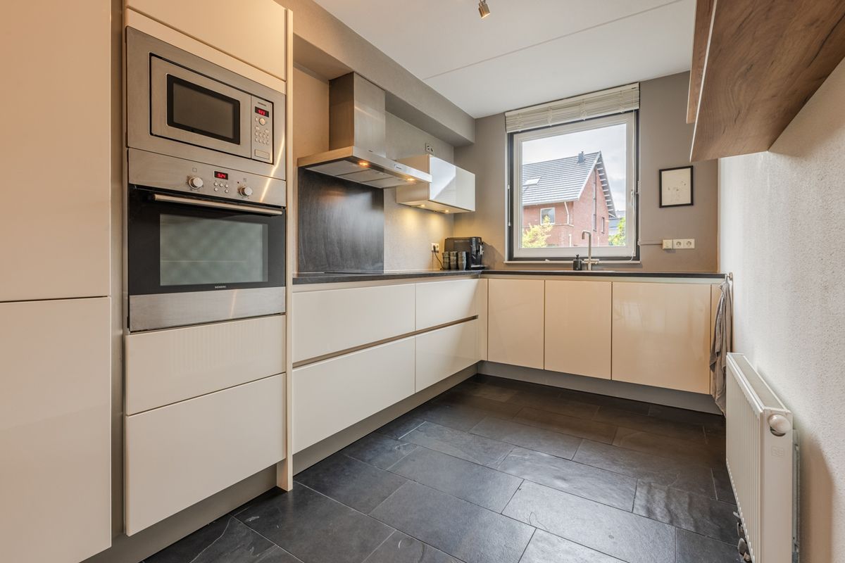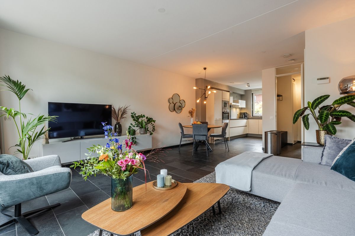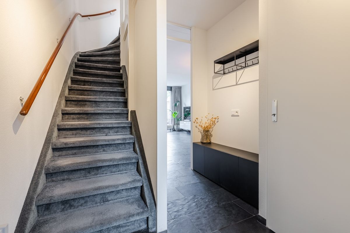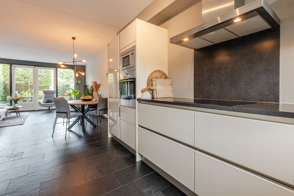 Begane grond: Hal, meterkast, trapopgang, toilet met fonteintje, tuingerichte woonkamer met grote glazen pui met openslaande deuren naar de tuin, provisiekast, open keuken is voorzien van een moderne inrichting voorzien van alle inbouw apparatuur waaronder een vaatwasser, oven, magnetron, inductiekookplaat, afzuigschouw, vriezer en koelkast. De gehele begane grond is voorzien van een leistenen plavuizen vloer met vloerverwarming.