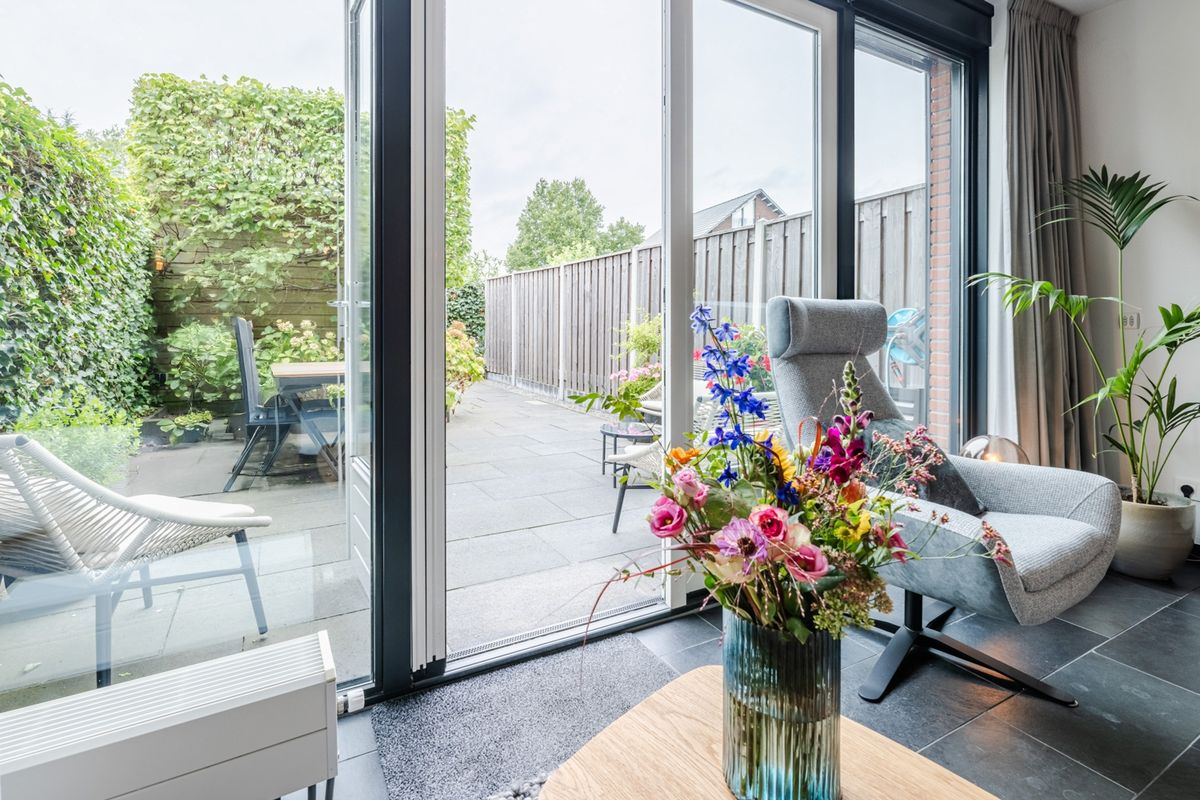 - achtertuin (NW) met achterom, elektrisch bedienbaar zonnescherm, veel zon en privacy;
