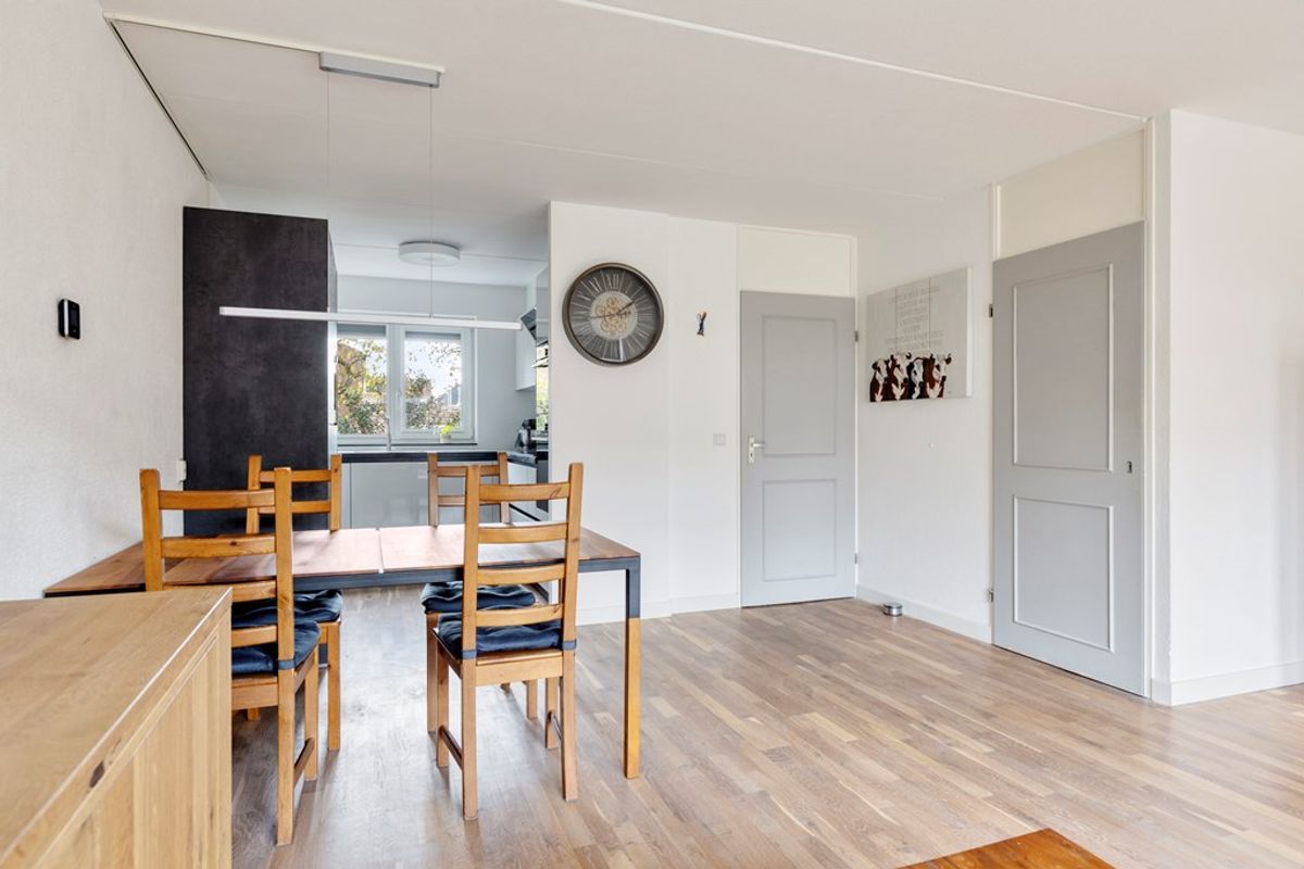 De woonkamer is opvallend breed en licht, veel indelingsmogelijkheden voor een royale zit- en eethoek en voorzien van een mooie massieve parketvloer, en spachtelputz wanden.