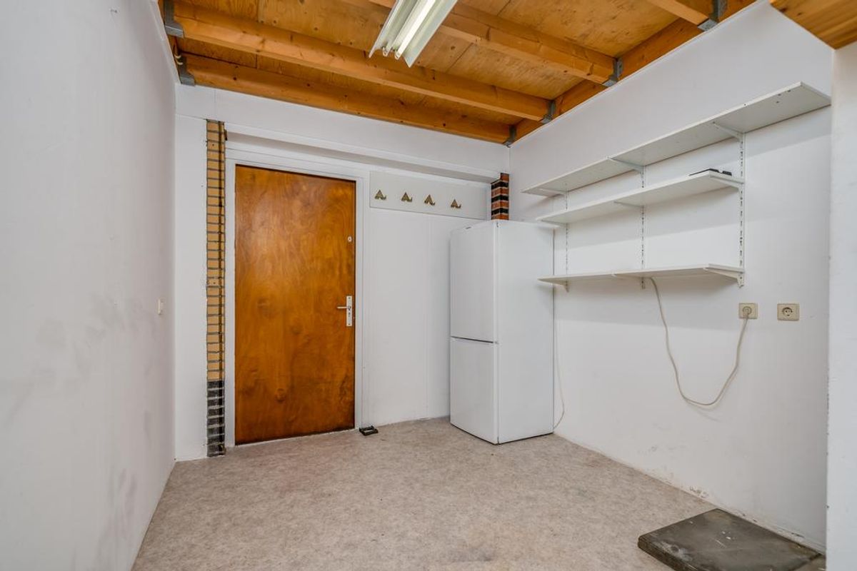 Overdekte entree, hal met de meterkast en het toilet. Ruime woonkamer (ca. 46m2) met erker en veel daglicht. Royale woonkeuken (ca. 26m2) voorzien van een magnetron, keramische kookplaat, oven/grill, vaatwasser, koelkast, vriesladen en openslaande deuren naar de tuin. Daarnaast is de woonkeuken voorzien van een kastenwand en toegang tot de hal. Vanuit de hal bereik je de werkkamer (ca. 11m2) voorzien van een lichtkoepel, berging en de kelder (ca. 13m2).
