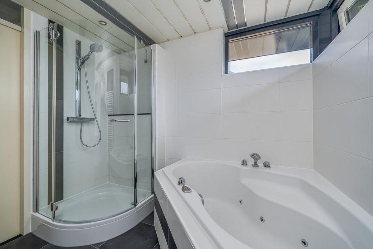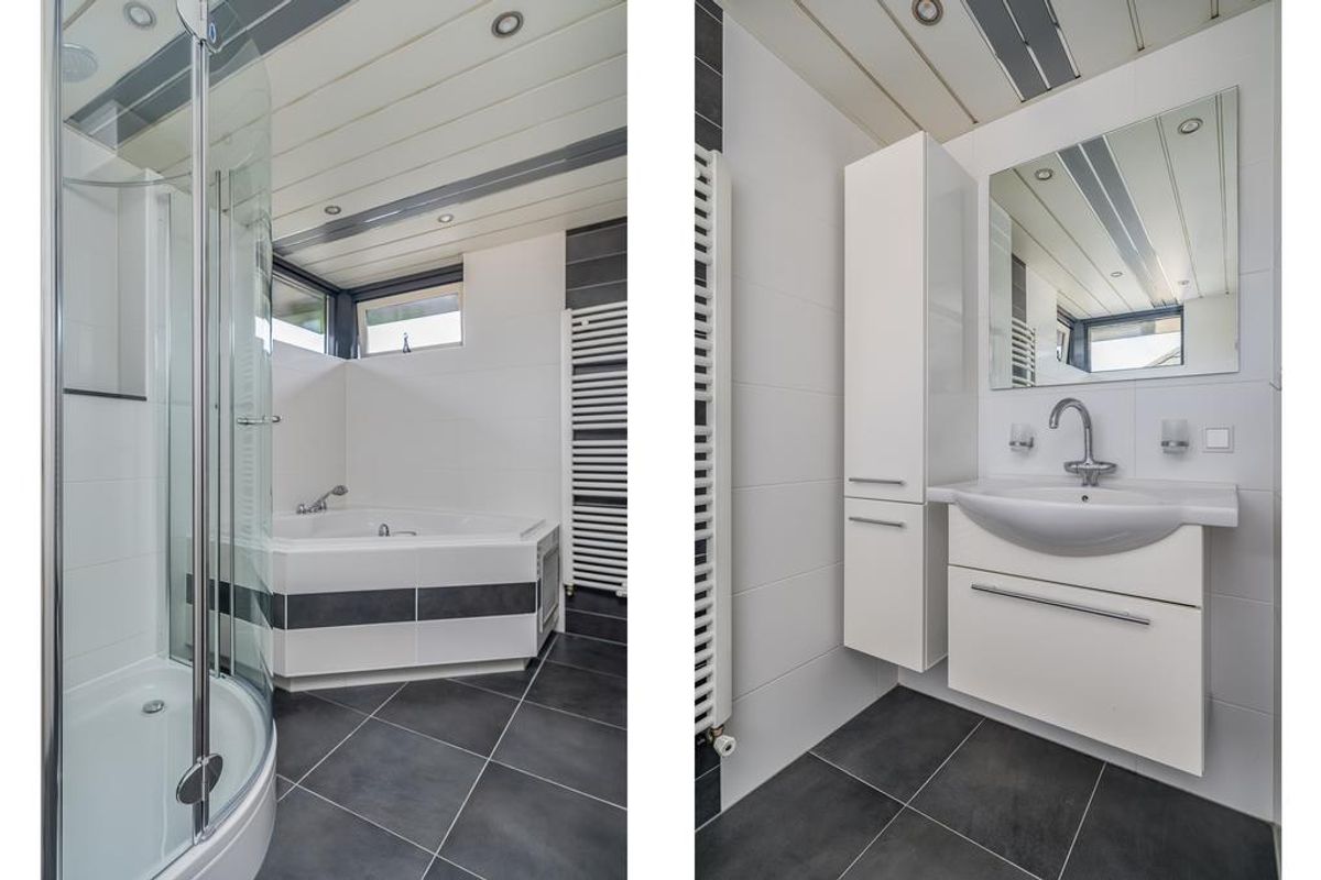Overloop met een apart toilet. Drie slaapkamers ca. (13,5m2), (12,7m2) en (10,2m2). De master bedroom is voorzien van toegang tot het balkon. Moderne badkamer voorzien van vloerverwarming, een whirlpool, douche en wastafelmeubel. De gehele 1e verdieping is voorzien van een nieuwe laminaat vloer.
