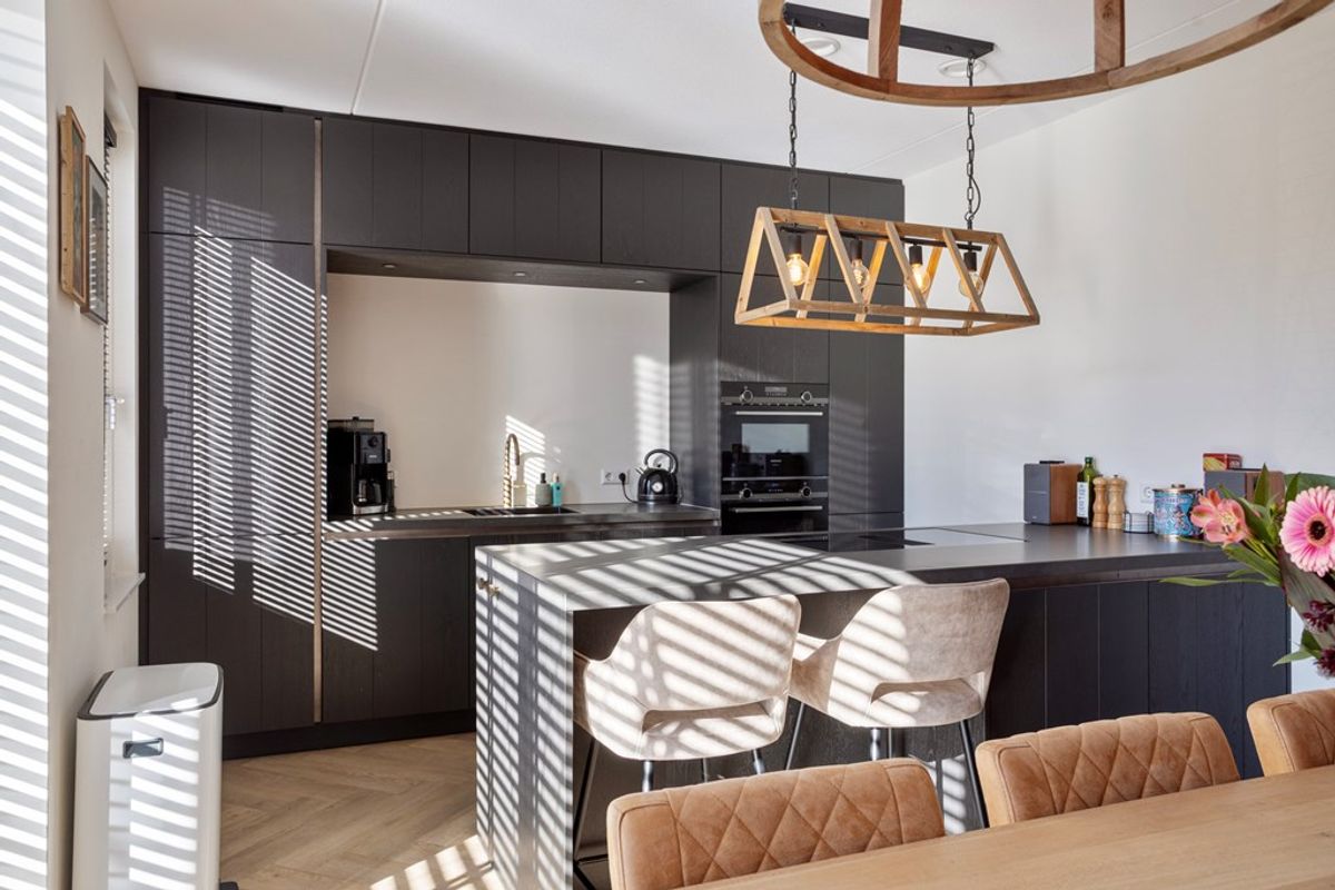 • Keuken: een prachtige keuken met kookeiland. Ook aan de voorzijde van de woning een mooie raampartij tot aan de vloer waardoor je veel licht hebt in de keuken. Het kookeiland is voorzien van een Novy kookplaat met afzuiging. Daarnaast is de keuken voorzien van een koel-vriescombinatie, vaatwasser, oven, combimagnetron (allen van het merk Siemens) en een kokend waterkraan van het merk Quooker.