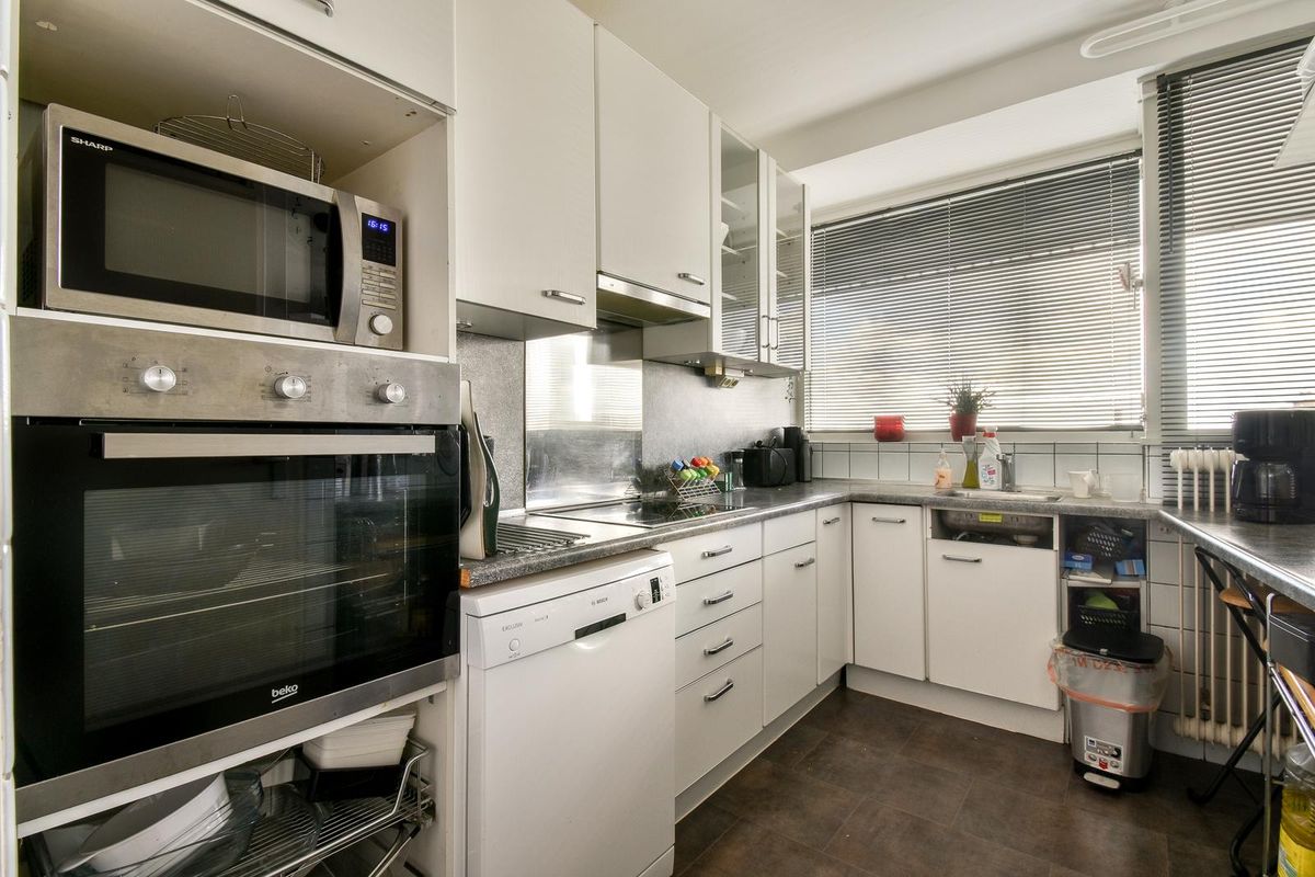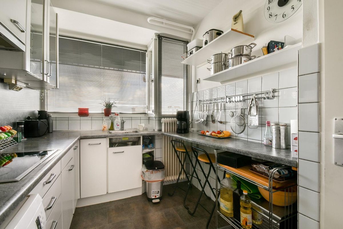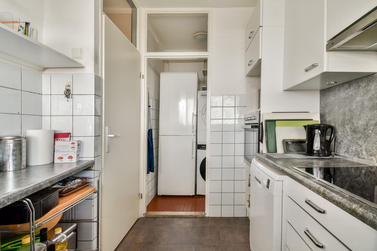 De keuken ligt aan de voorzijde en is voorzien van een vierpits keramische kookplaat, een oven en een afzuigkap. Door de boven- en onderkasten is er veel bergruimte. Het aanrechtblad loopt door (U-vorm) waardoor er een gezellige bar in de keuken is ontstaan. Vanuit de keuken is er toegang tot een grote voorraadkast waarin de wasmachine-aansluiting zich bevindt.
