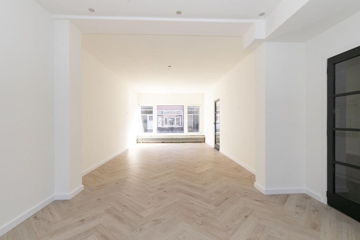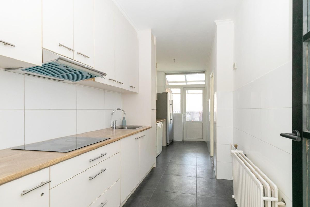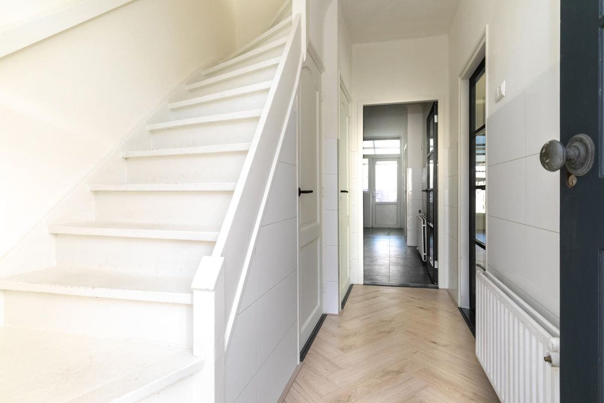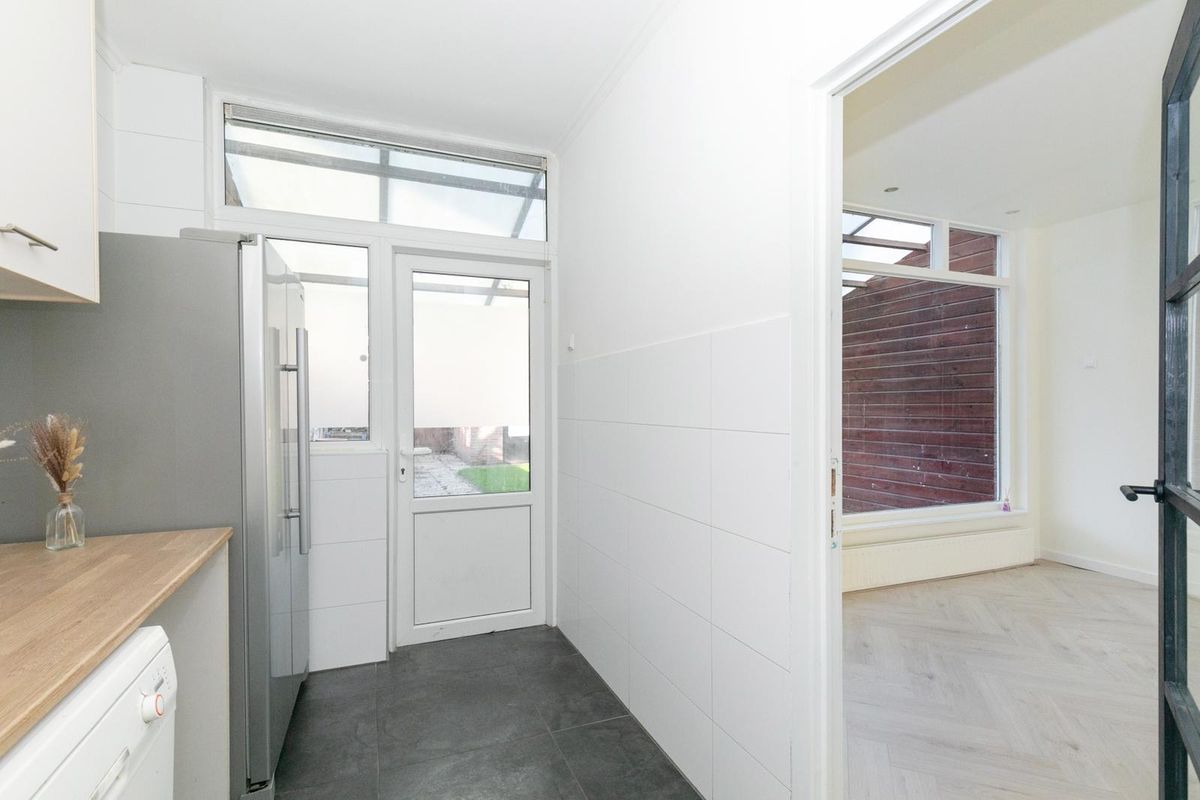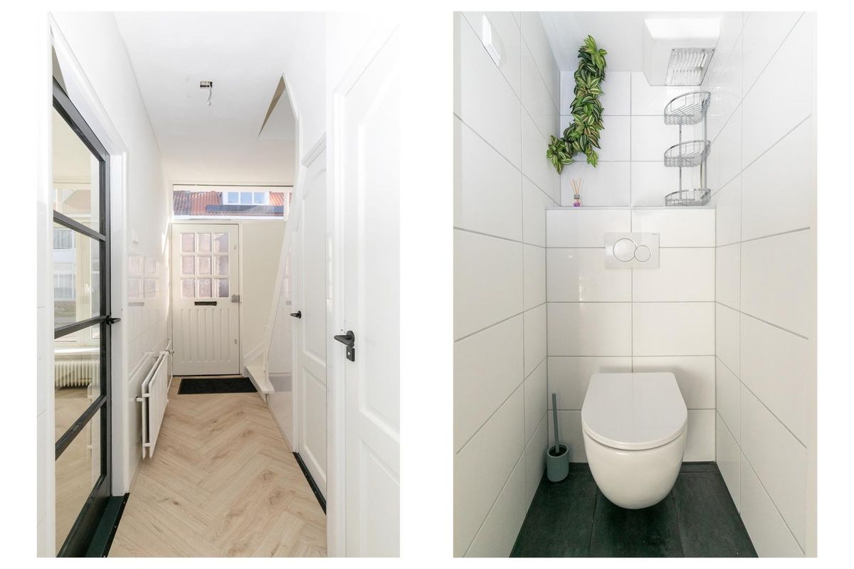 Begane grond: We komen de woning binnen in de hal/entree, hier zijn de trapkast met recent aangepaste meterkast gelegen als ook de gemoderniseerde toiletruimte. De toiletruimte is volledig betegeld en voorzien van een hangend closet. In de hal ligt een tegelvloer welke in de keuken is doorgelegd. Vanuit de hal komen we in de zeer riante woonkamer. De doorzon woonkamer is heerlijk ruim en licht dankzij de grote raampartijen. Deze kamer is aan de achterzijde uitgebouwd en staat in verbinding met de keuken. De keuken is ingericht in een rechte opstelling en is zeer ruim. Zo is er veel werkblad en bergruimte met onder- en bovenkasten. De keuken beschikt over diverse (losstaande) apparatuur waarvan de inductieplaat en afzuigunit recent vernieuwd zijn. Vanuit de keuken is de achtertuin te bereiken. De achtertuin is op het westen gelegen en nagenoeg geheel voorzien van sierbestrating en gazon. Er is overkapping aan de woning vast. Daarnaast is er een stenen berging en een eigen achterom.