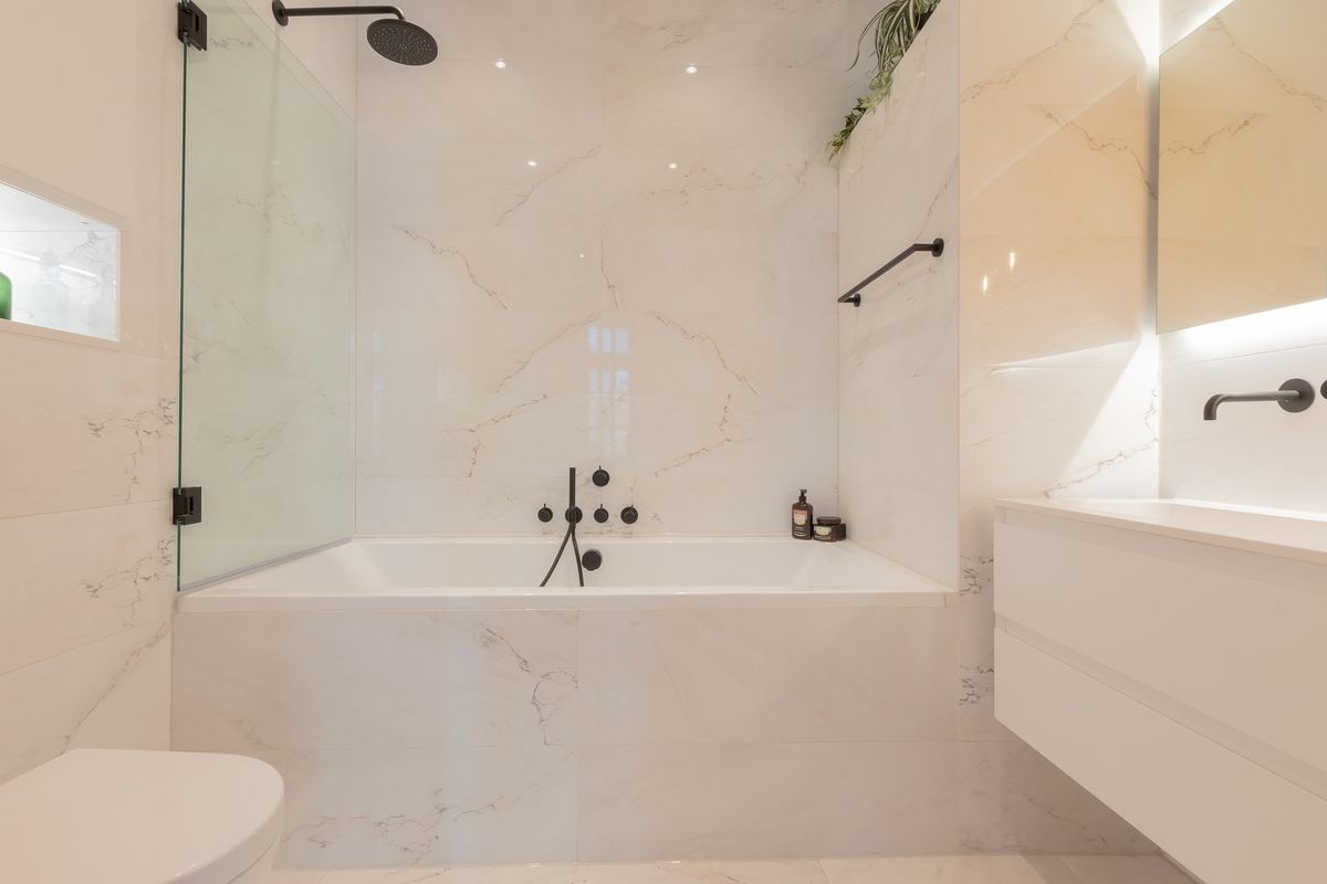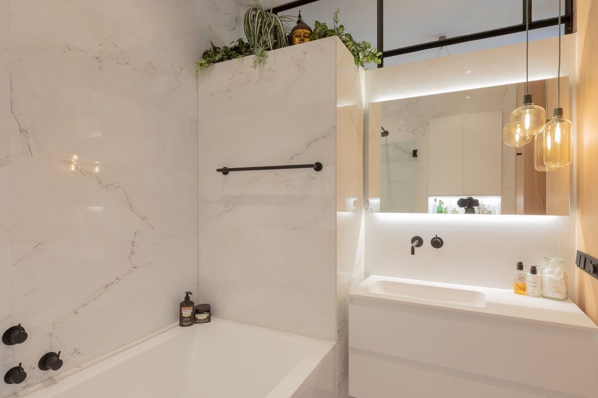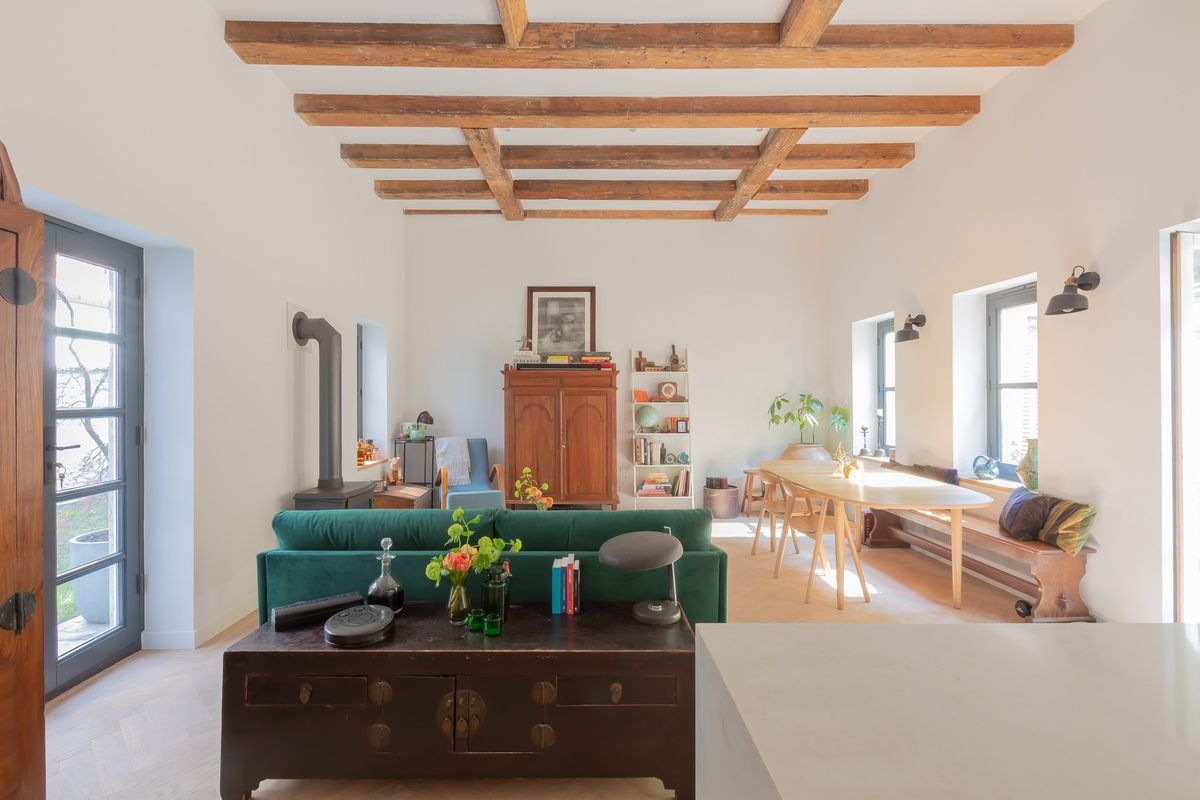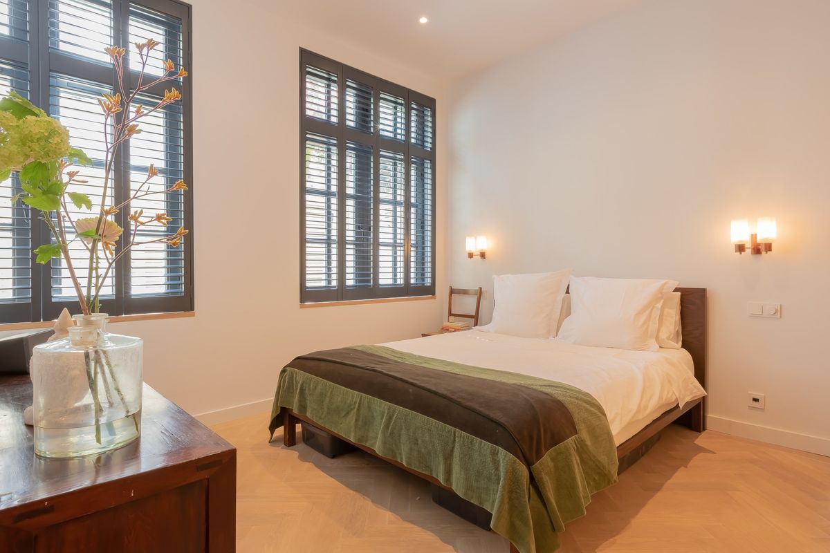 Through the communal entrance, you reach the entrance of the house at the rear of the national monument “de Saayer.” The house has been recently completely renovated and remodeled, and the entire home features a herringbone oak floor. The spacious hallway provides access to all rooms. There is one bedroom with a sofa bed and a master bedroom with a double bed and an en-suite marble bathroom equipped with a bathtub, toilet, and sink. The second bathroom has a rain shower and sink. The living room has a high beamed ceiling. Access to two gardens, one being the large inner garden and the other at the rear, allowing you to fully enjoy the sun. The open kitchen with an island is fully equipped.