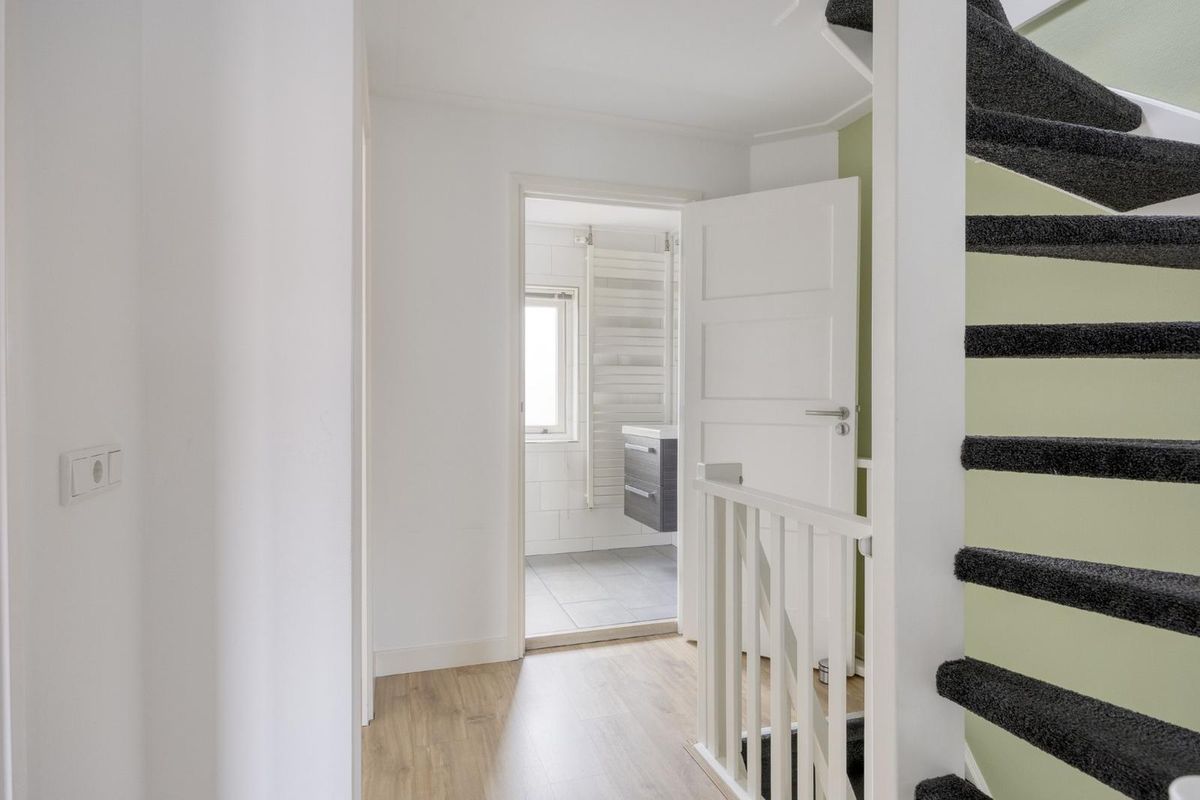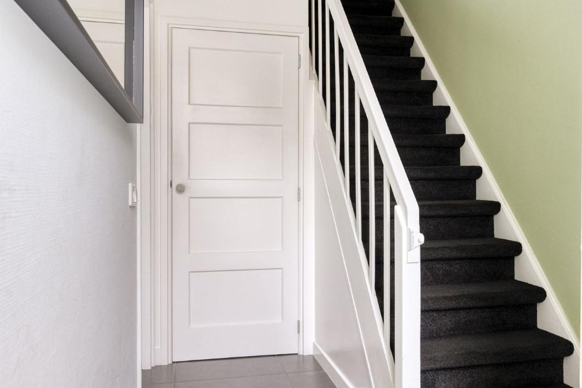 Je komt binnen in de hal met trapopgang en toilet en loopt door naar de woonkamer.