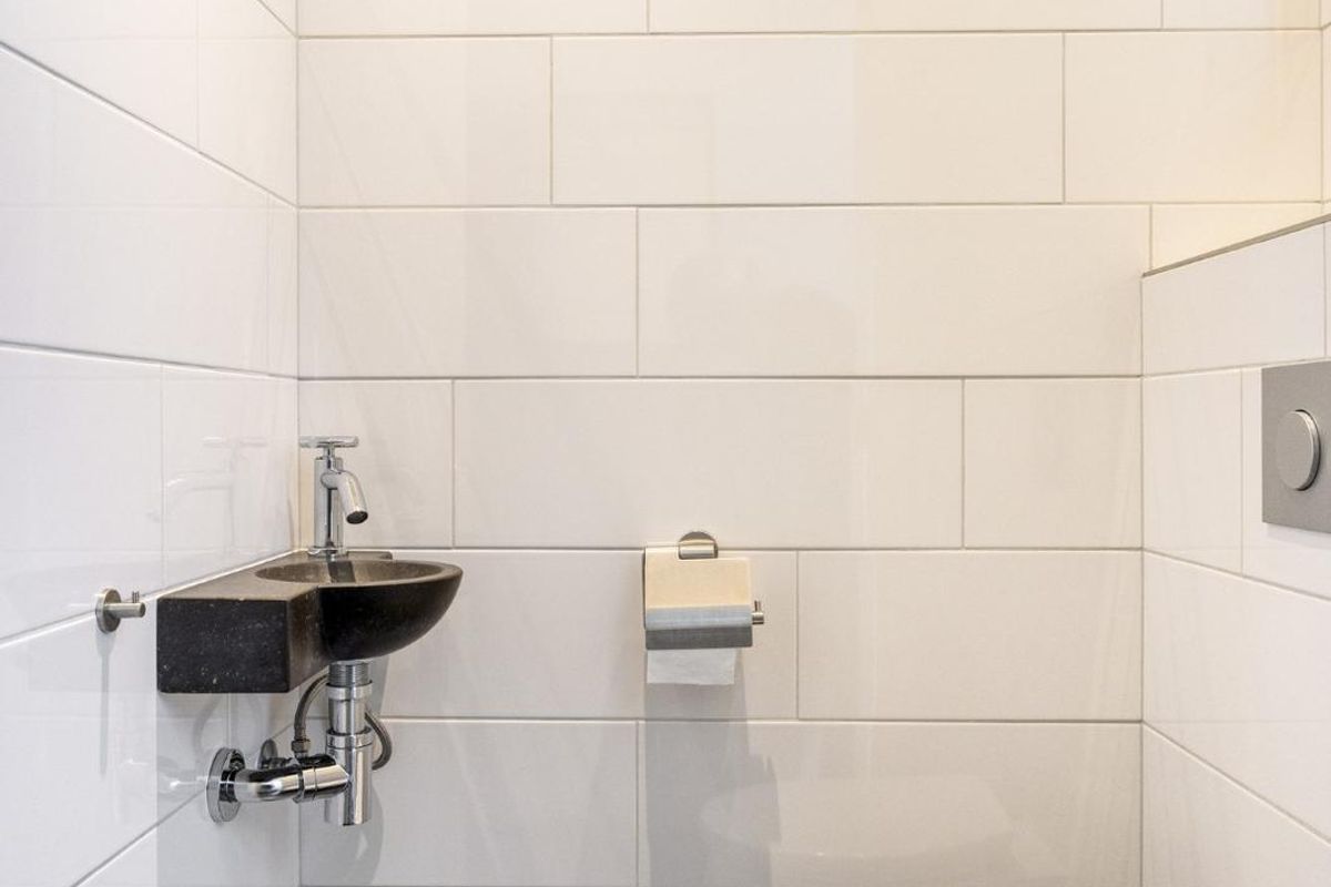 Er is een ruime inloopdouche en een toilet, en dankzij het strakke wastafelmeubel, de hoge kast en de spiegelkast is er volop opbergruimte voor al je spullen.