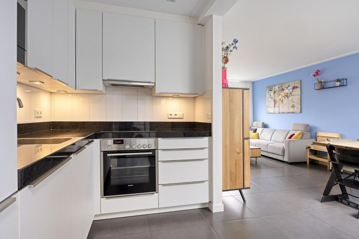 De keuken bevindt zich aan de achterzijde en vormt het praktische en gezellige hart van het huis.