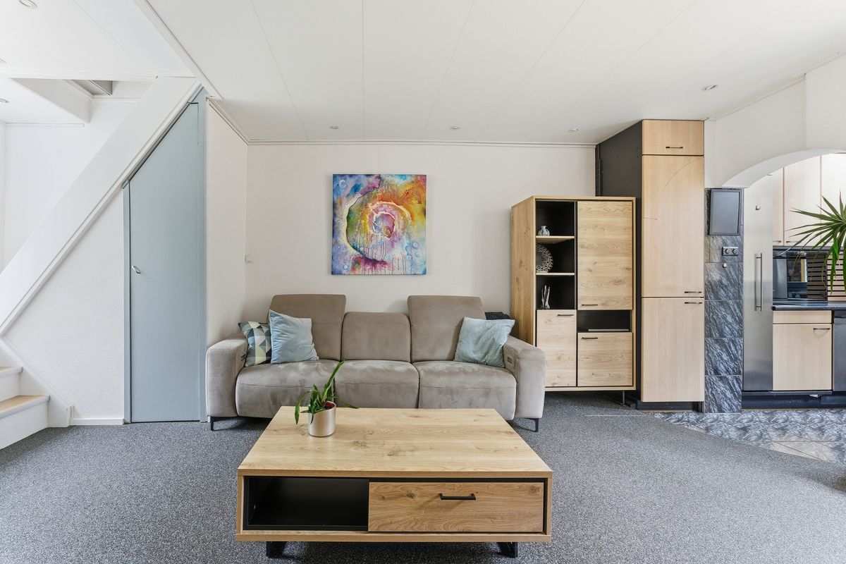 Entree: Je komt binnen in een knusse hal met toegang tot de toiletruimte en de woonkamer. Hier vind je de meterkast en een handige inbouwkast die volop bergruimte biedt. De hal biedt een praktische entree, hoewel de bewoners doorgaans via de achterom binnenkomen. De hal is afgewerkt met een plavuizenvloer, spachtelputz wanden en een delen plafond.