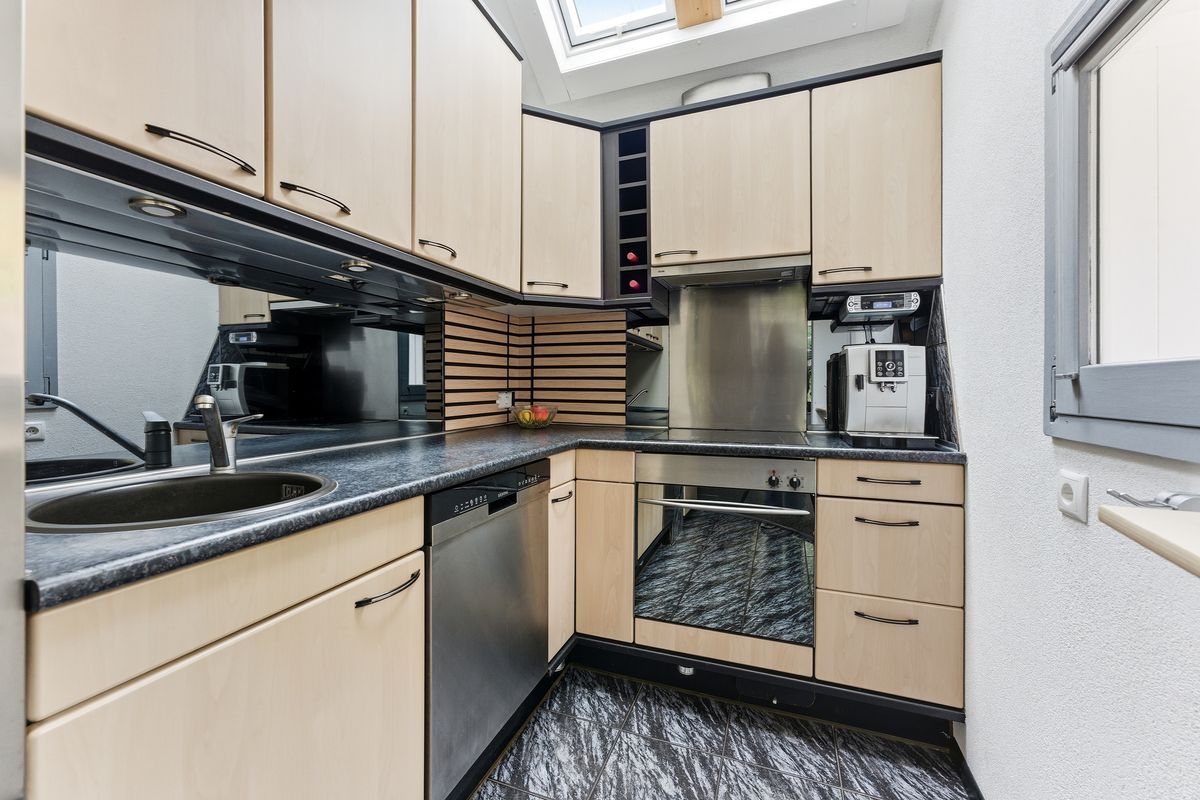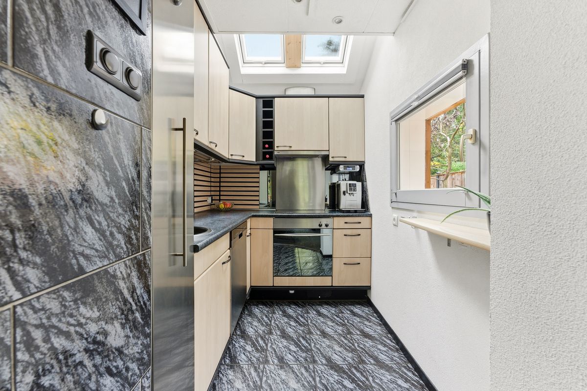 Keuken: Aan de achterzijde vind je de open keuken met twee dakramen die voor veel daglicht zorgen. De keuken is voorzien van diverse inbouwapparatuur, waaronder een oven, inductiekookplaat, afzuigkap, koel-/vriescombinatie, apothekerskast en vaatwasser. De keuken is functioneel, maar wel verouderd, dus ideaal voor wie graag zijn eigen draai aan de woning wil geven.