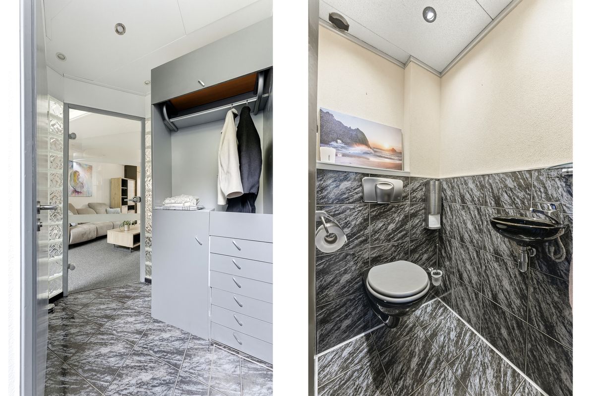 Toilet: De toiletruimte is deels betegeld en voorzien van een zwevend closet, fonteintje en inbouwspots. De afwerking is prima, maar kan desgewenst worden gemoderniseerd.