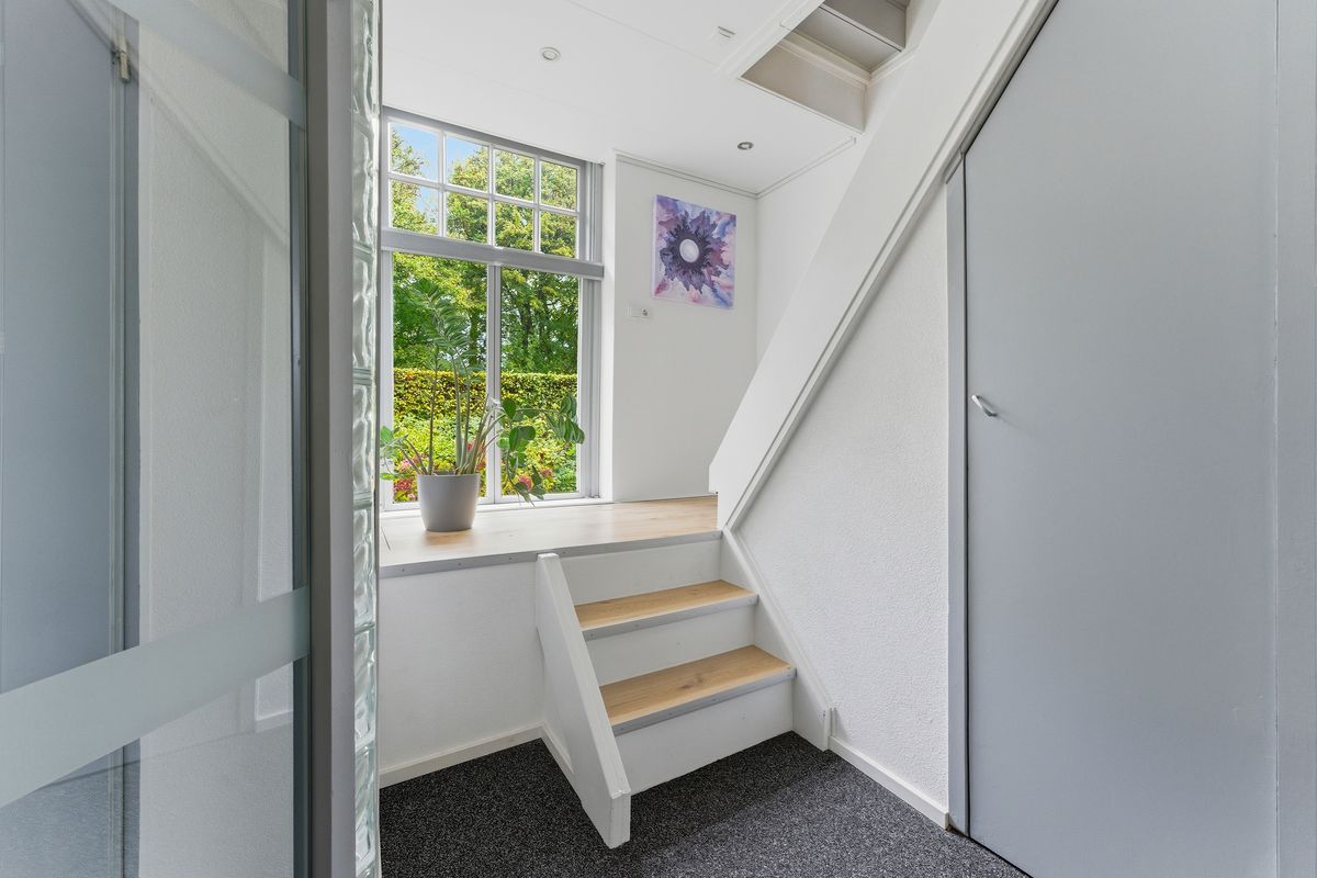 Overloop / zolderruimte: De tweede verdieping is een fijne, extra ruimte en door de twee grote Velux-dakramen komt er veel licht binnen. Hier bevindt zich tevens de Cv-ketel (Vaillant, 2017) achter een luik. De ruimte is momenteel in gebruik als slaapkamer, maar zou ook als speel- of opslagkamer gebruikt kunnen worden. Door de grote ramen heb je zicht op de groene omgeving. De ruimte is afgewerkt met een laminaatvloer, gestuukte wanden en houten plafond met inbouwspots.