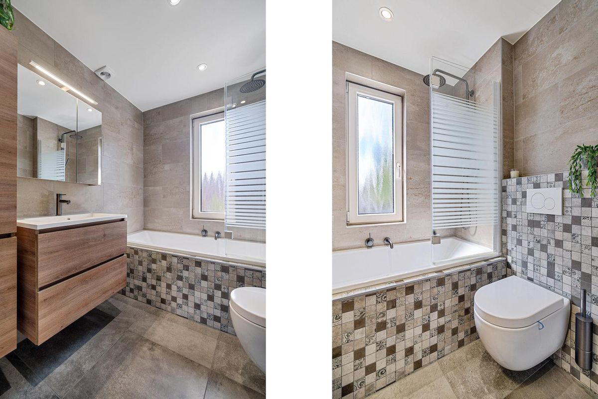 De overloop geeft toegang tot drie comfortabele slaapkamers. De moderne badkamer is compleet ingericht met een ligbad, tweede toilet en wastafelmeubel. Ook is er elektrische verwarming aanwezig voor snelle warmte.