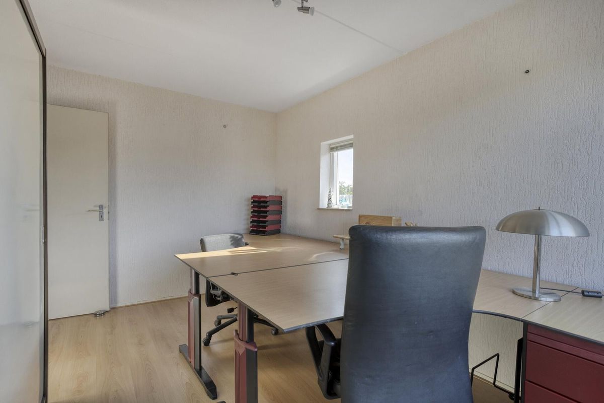 Slaapkamer 3 (ca. 10 m2) is gelegen aan de voorzijde van de woning en is voorzien van linoleum vloer en bergruimte achter het knieschot. Deze slaapkamer biedt een aangename natuurlijke lichtinval door de grote raampartij.