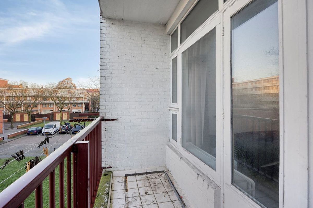 Via het afgesloten portiek met trapopgang bereik je de entree van het appartement op de tweede verdieping. De hal biedt toegang tot alle vertrekken. De woonkamer is licht en ruim, met een zitgedeelte en eetgedeelte. De gesloten keuken, voorzien van inbouwapparatuur, bevindt zich aan de voorzijde van de woning en heeft een eigen balkon op het Oosten.
