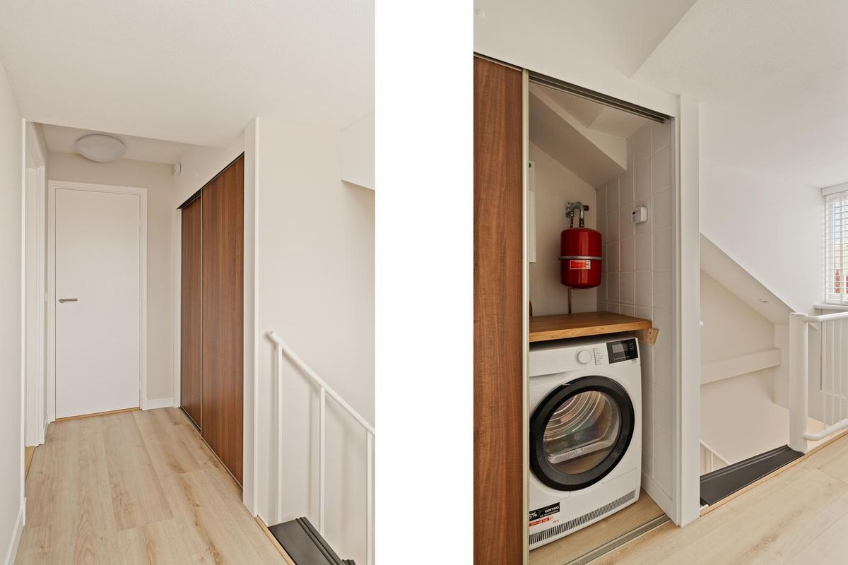 Ruime overloop met opstelplaats voor wasmachine, droger en CV-ketel (Nefit).