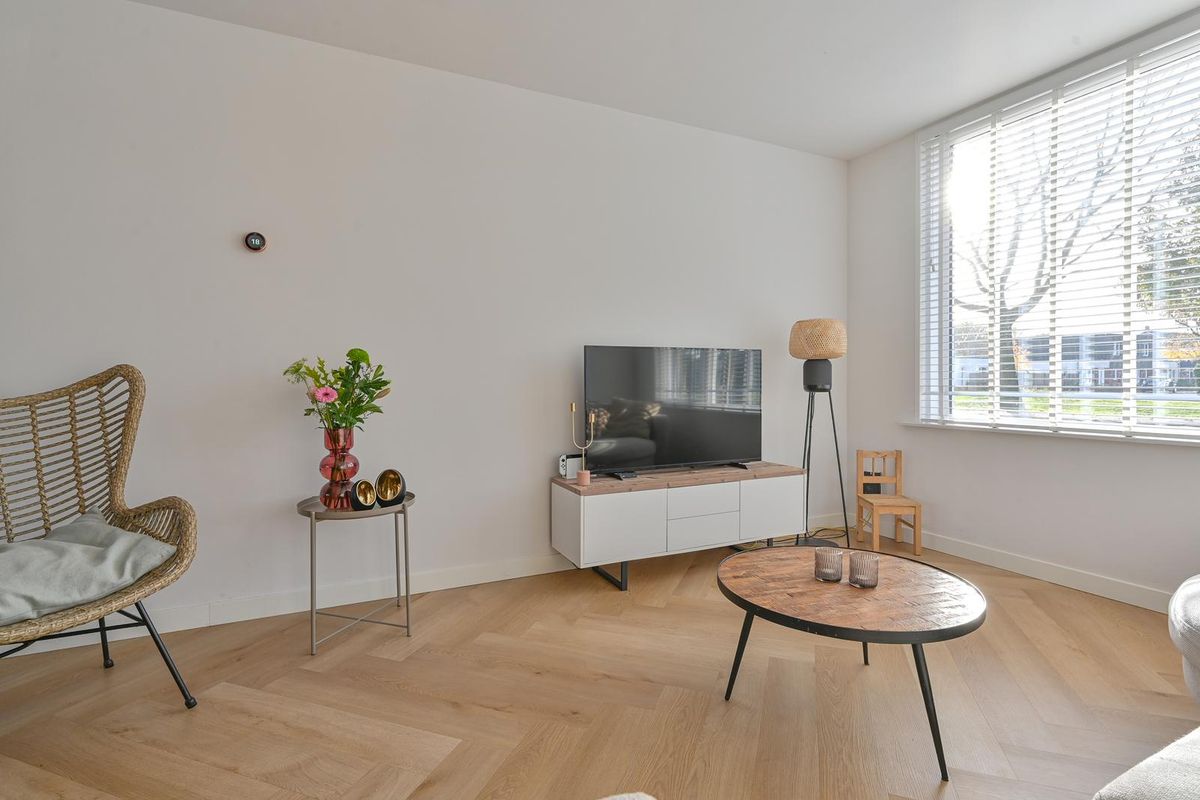 o.a. hal/entree, toilet, woonkamer met vloerverwarming en pvc-vloer, in 2024 uitgebouwde woonkeuken met fraai kookeiland + kastenwand. Bijkeuken met witgoed aansluiting en een achterom.