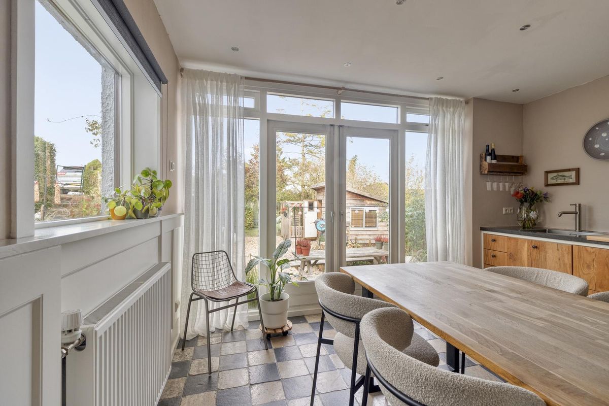 De achtertuin biedt volop rust en privacy. Je vindt hier een sfeervol, overdekt zitgedeelte waar je het hele jaar door van de buitenlucht kunt genieten. Achterin de tuin staat een houten berging met gezellige uitstraling – perfect voor opslag of als hobbyruimte.