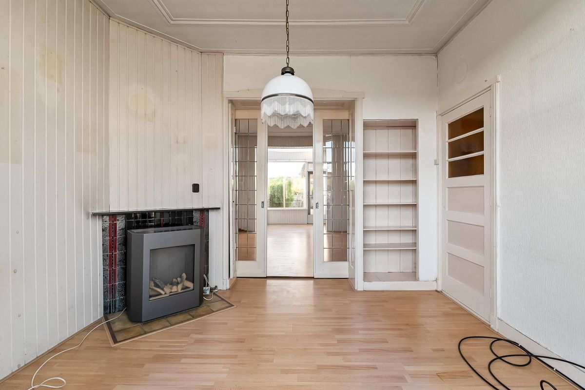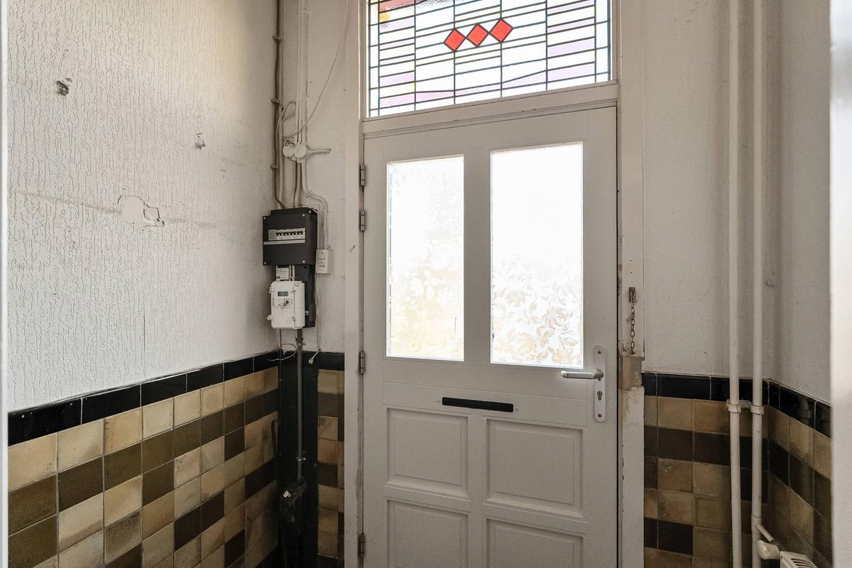 Indeling: entree met nieuwe voordeur, tochtportaal en hal met originele deuren v.v. glas-in-loodwerk, trapopgang en toiletruimte. De woonkamer is zeer ruim door een uitbouw en voorzien van hoge plafonds, paneeldeuren en een schouw met gashaard. De verwarming in de woning vindt plaats via cv-installatie. De keuken en de badkamer tref je in de uitbouw. Deze zijn mooi ruim en kunnen naar wens worden gemoderniseerd. Ook is het mogelijk om de badkamer boven te realiseren en van de huidige badkamer een mooie grote bijkeuken te maken voor het witgoed en apparatuur voor bijvoorbeeld verduurzaming. De achtertuin is v.v. bestrating, terras, beplanting en grote schuur.